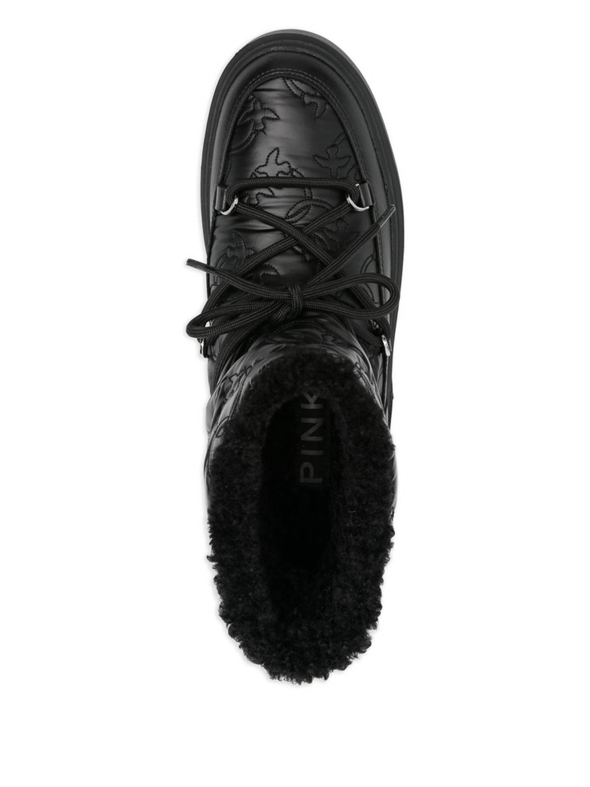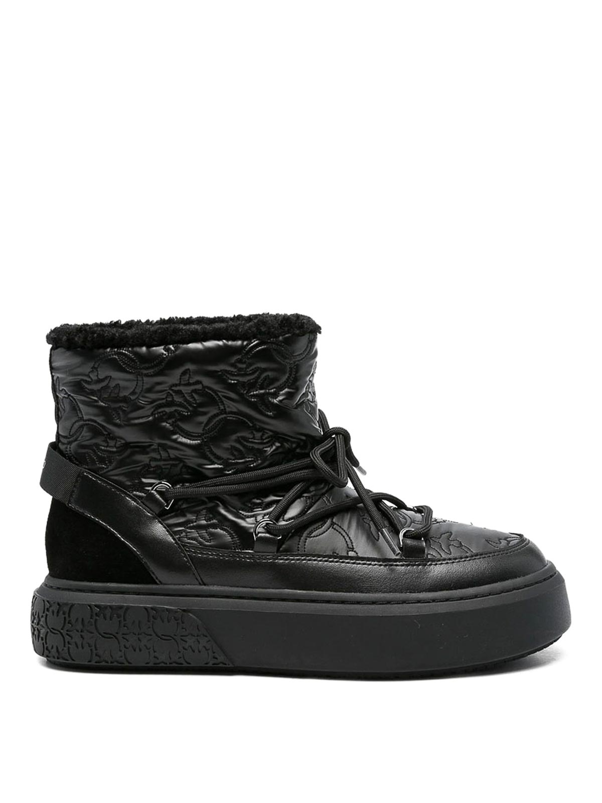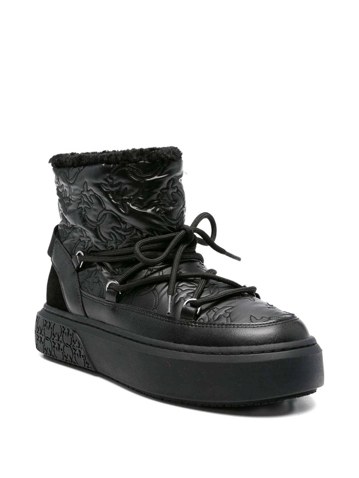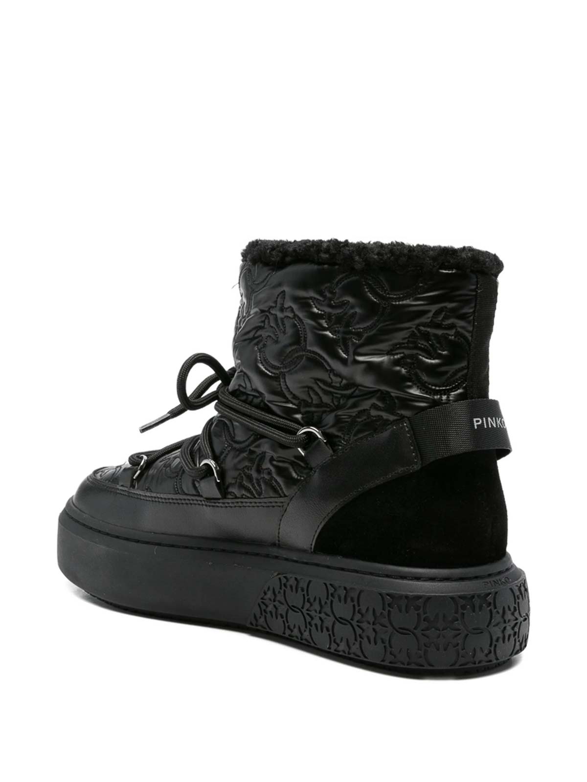 Black quilted effect lace-up embossed logo