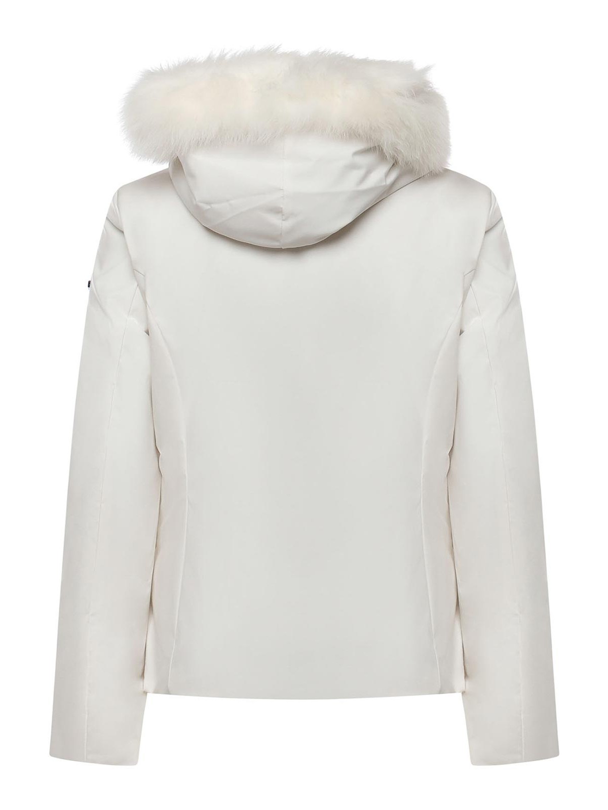 made of technical softshell, front closure with a hidden two-way zip, hood with fur trim, two front pockets with concealed zips, lined, regular fit, size shown in the photo is s, designer color: tofu