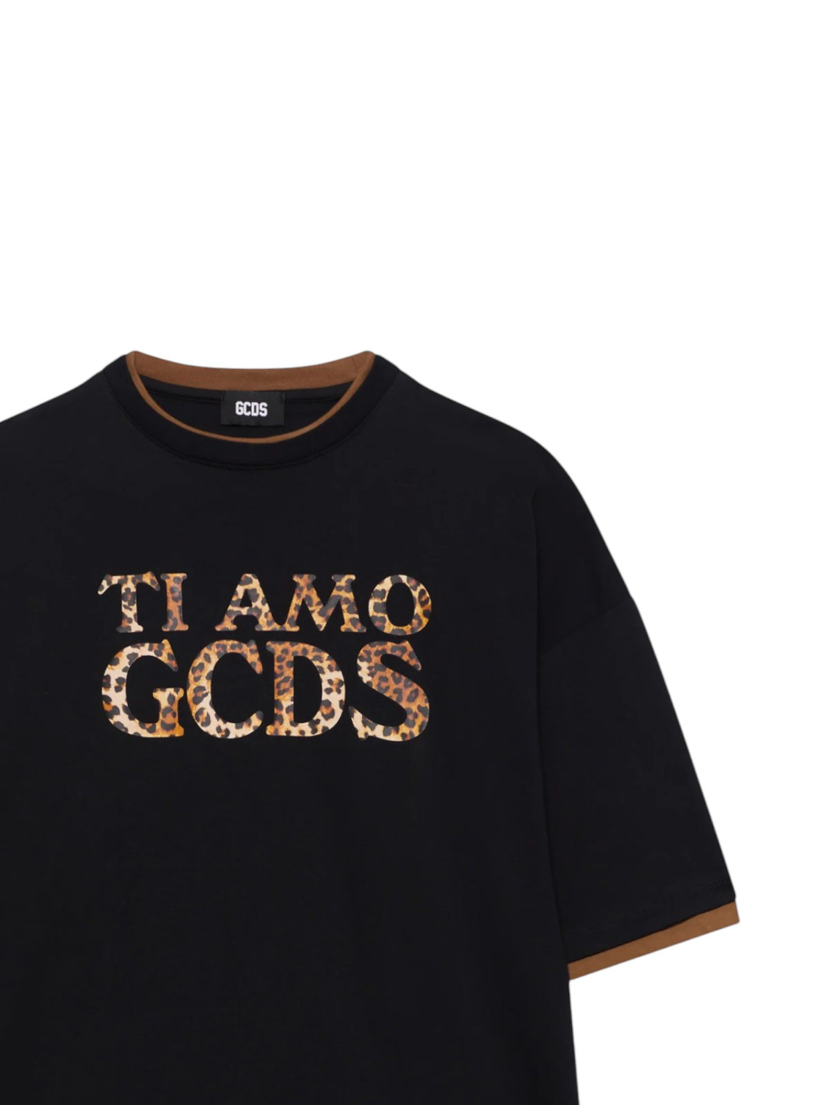 Gcds t, logo shirt I love you gcds outlined the t, logo shirt I love you gcds outlined interprets the iconic aesthetic of the brand with irony and character, made of pure fabric, it has an oversized fit that gives a relaxed and contemporary allure. the maxi front print I love you gcds animalier effect captures attention with a bold and distinctive touch while the edges on the sleeves and bottom add a graphic that enhances its urban character. the classic crew neck completes a garment that combines pop energy and metropolitan spirit, perfect for looks casual or streetwear with impact, compact and soft, oversized fit, I love you gcds print, animalier effect, ribbed edges on sleeves and hem, crew neck