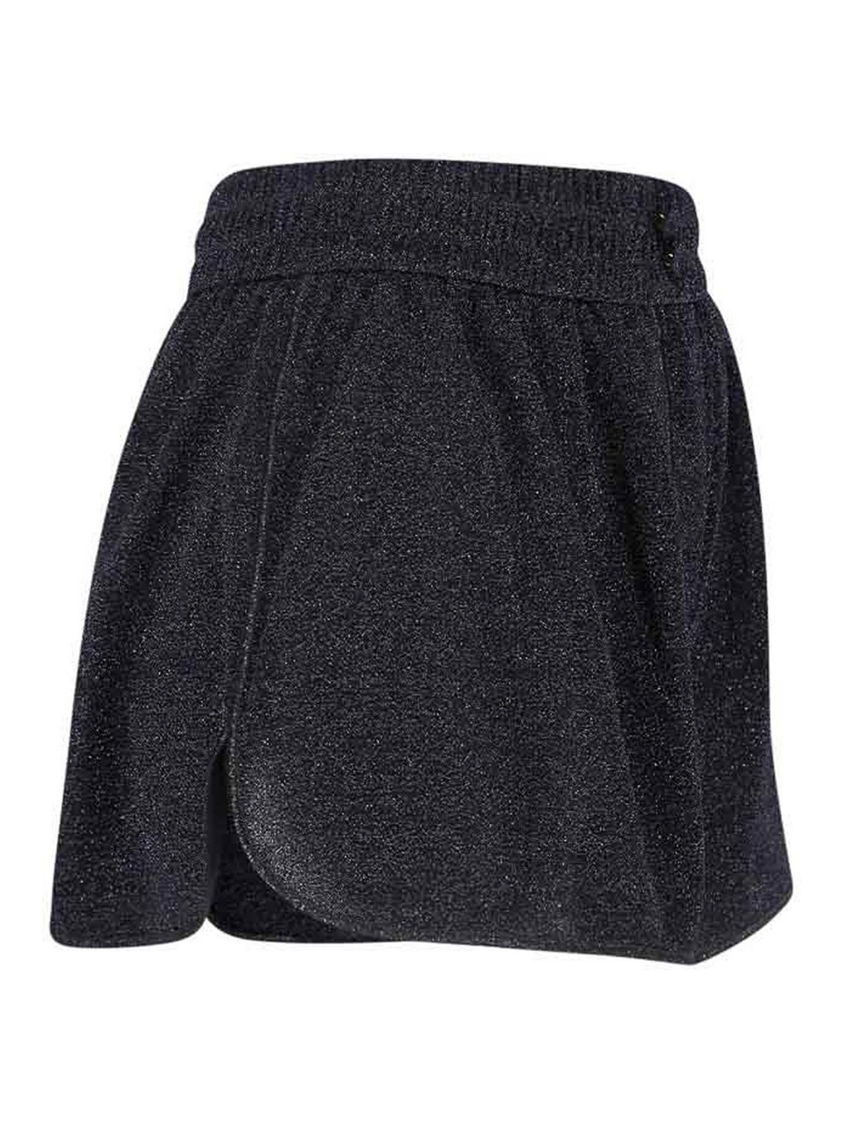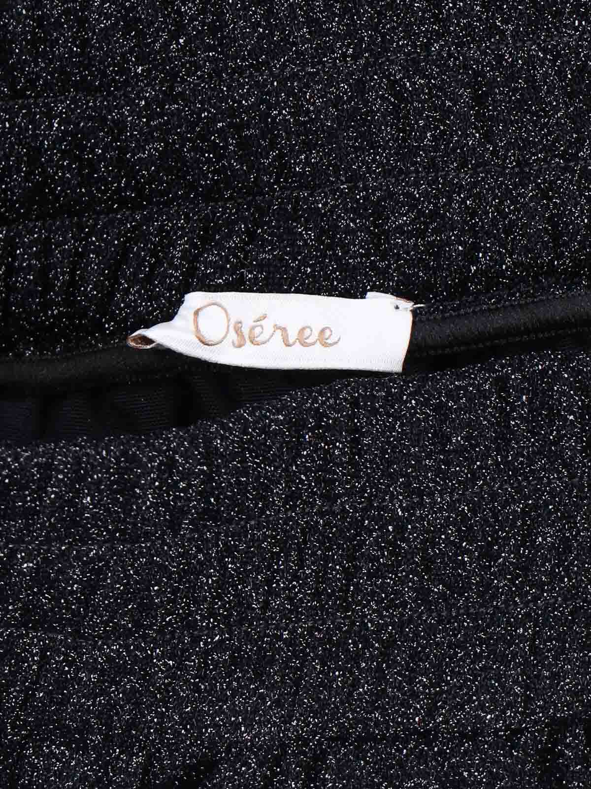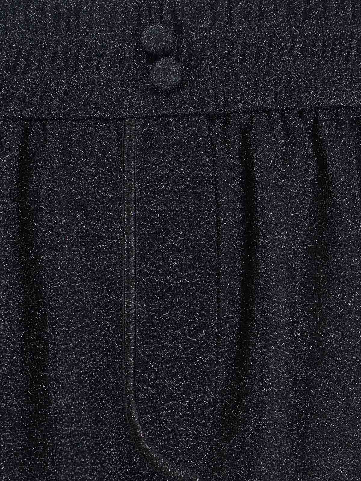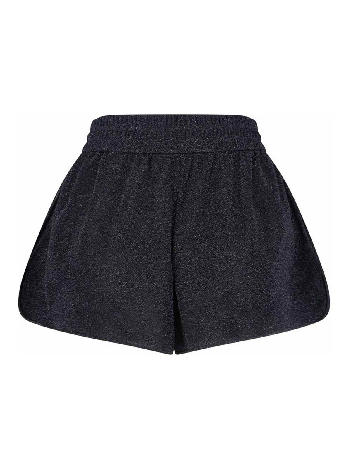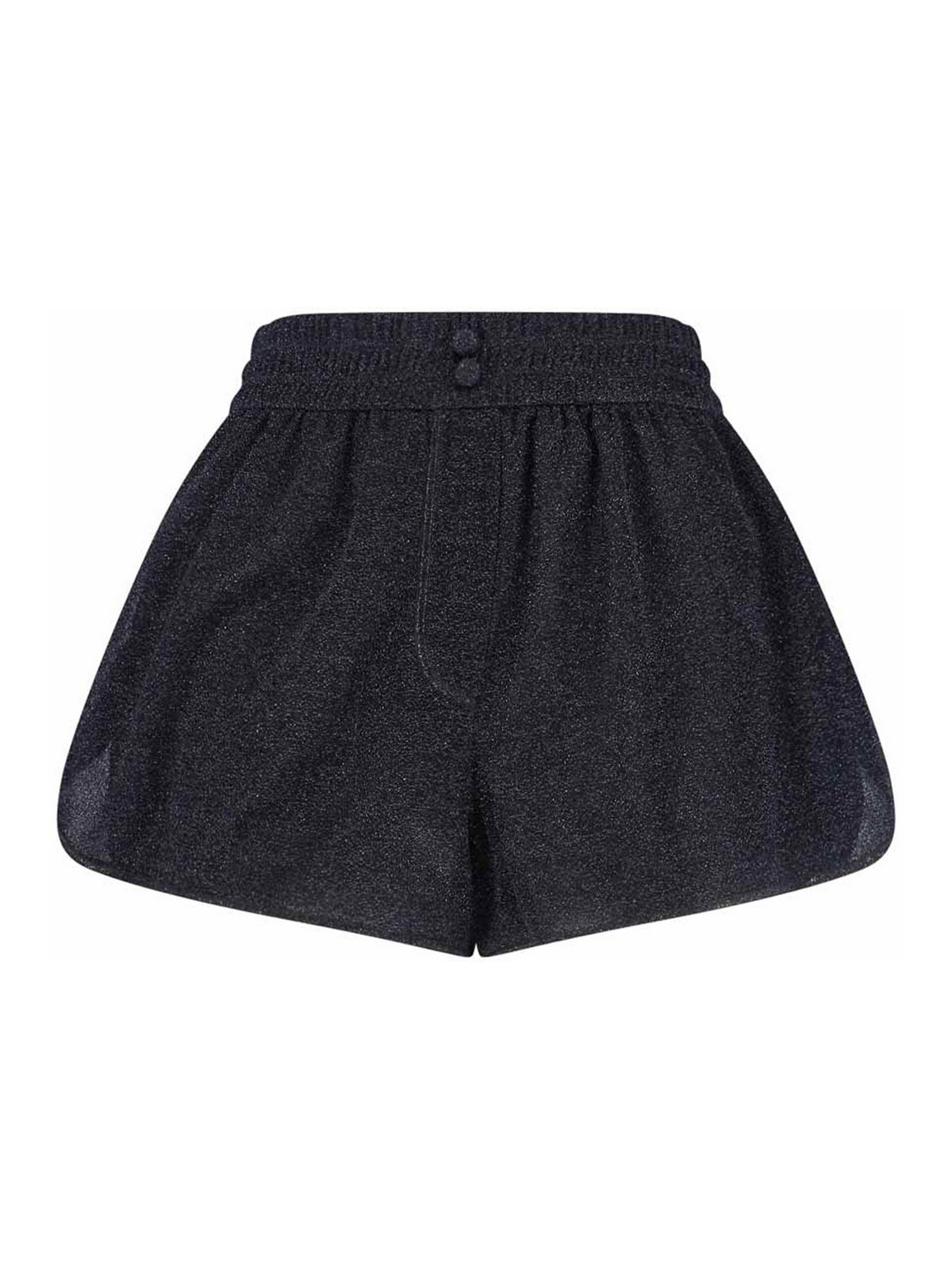 Oseree lumiere shorts in black semi-transparent metallic fabric, elasticated mid-waist, front buttons, straight leg.