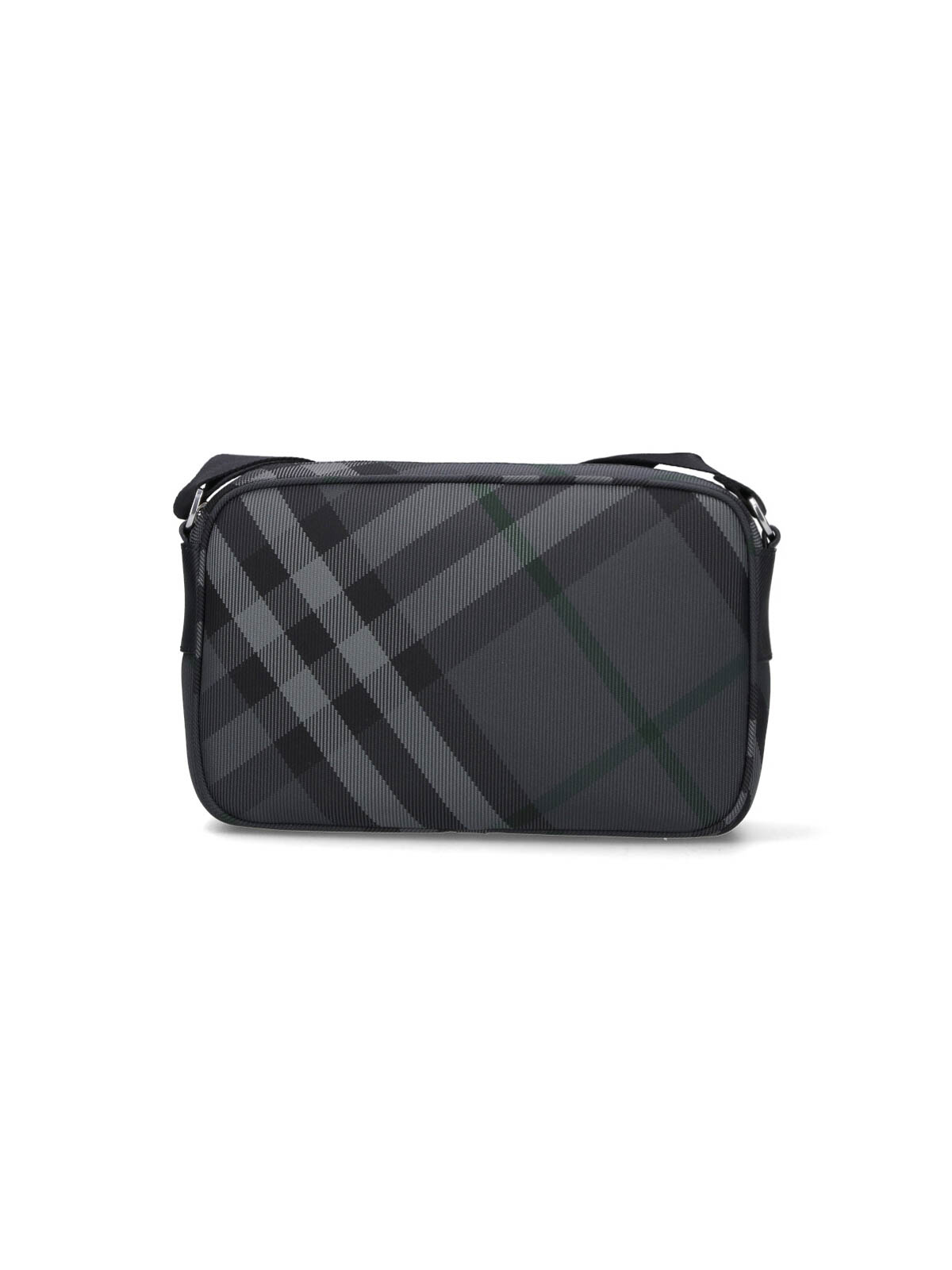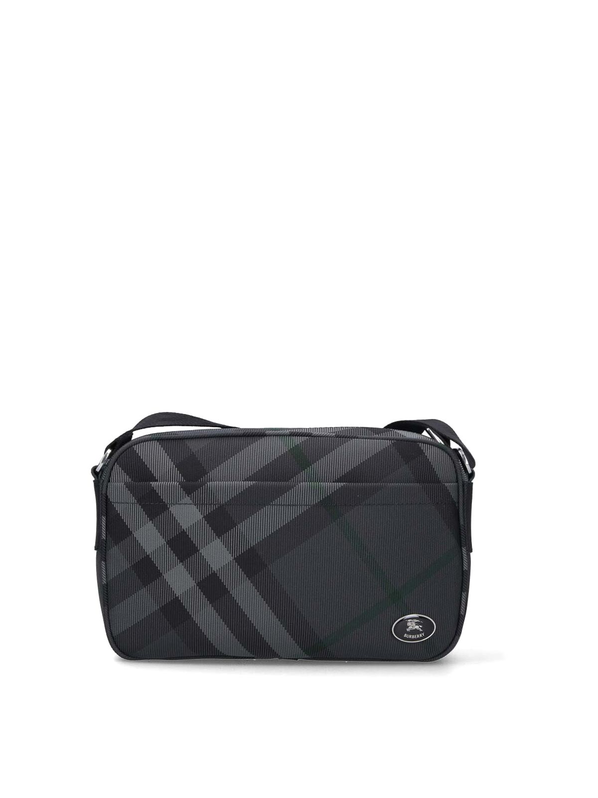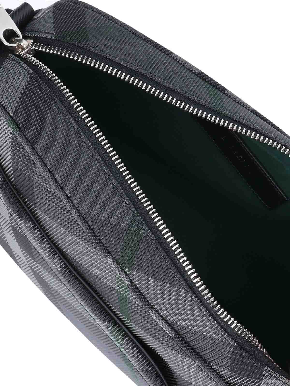 Burberry grid shoulder bag, in gray fabric, check motif, adjustable shoulder strap, zip closure, one front pocket, edk logo detail in enamelled metal on the front, one internal compartment.