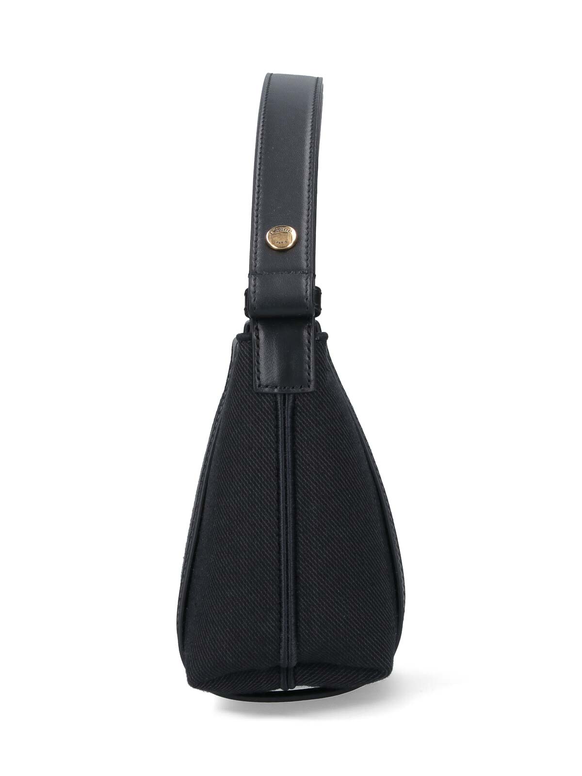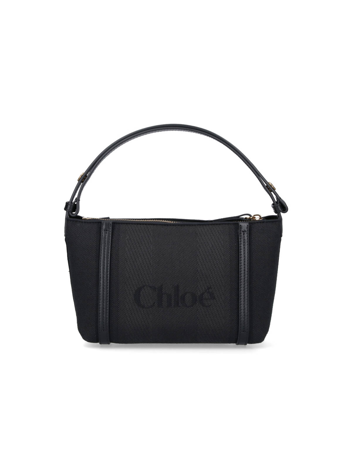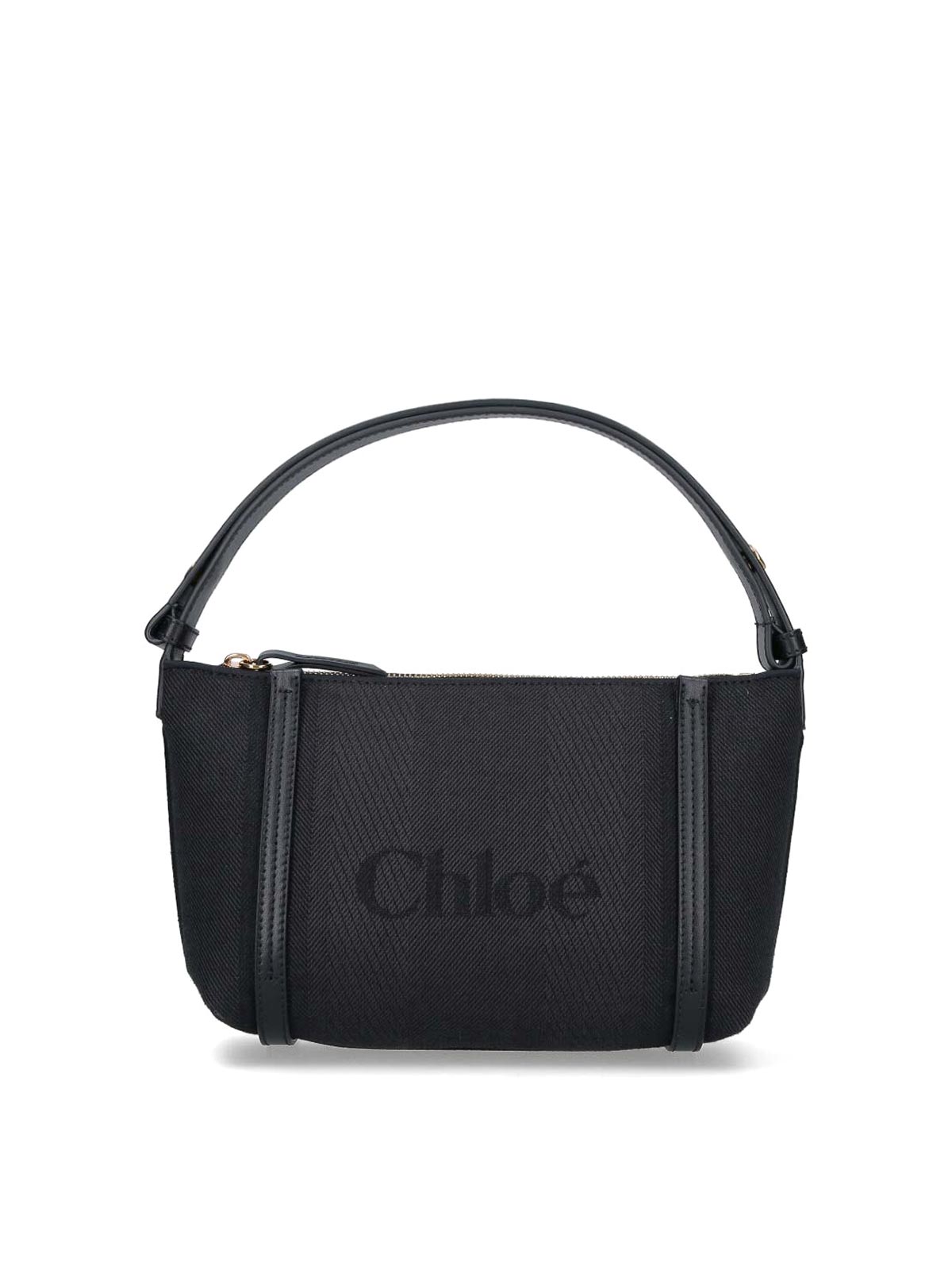 Chlo carry shoulder bag, in black cotton blend, calfskin finishes, adjustable handle, zip closure, front and back logo embroidery, one internal flat pocket, one internal compartment.