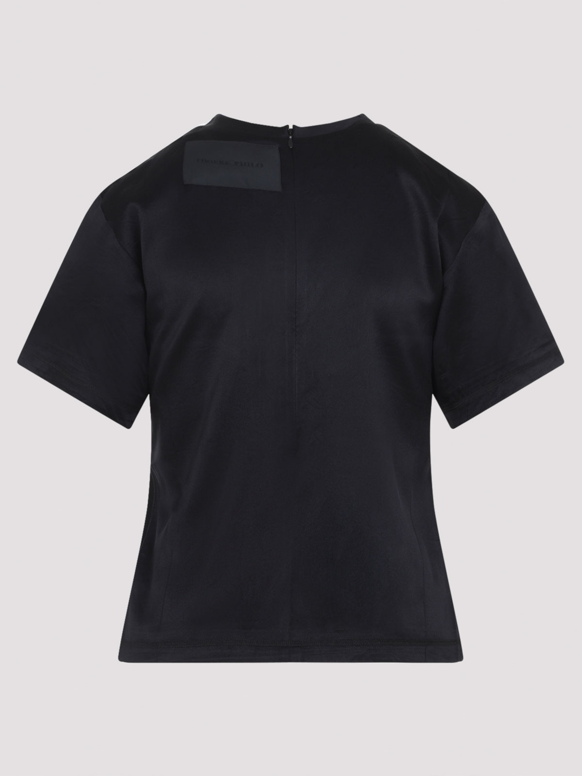 Phoebe philo black silk graphic tee. black silk, crew neckline, short sleeves, straight hem, zip fastening on back panel.