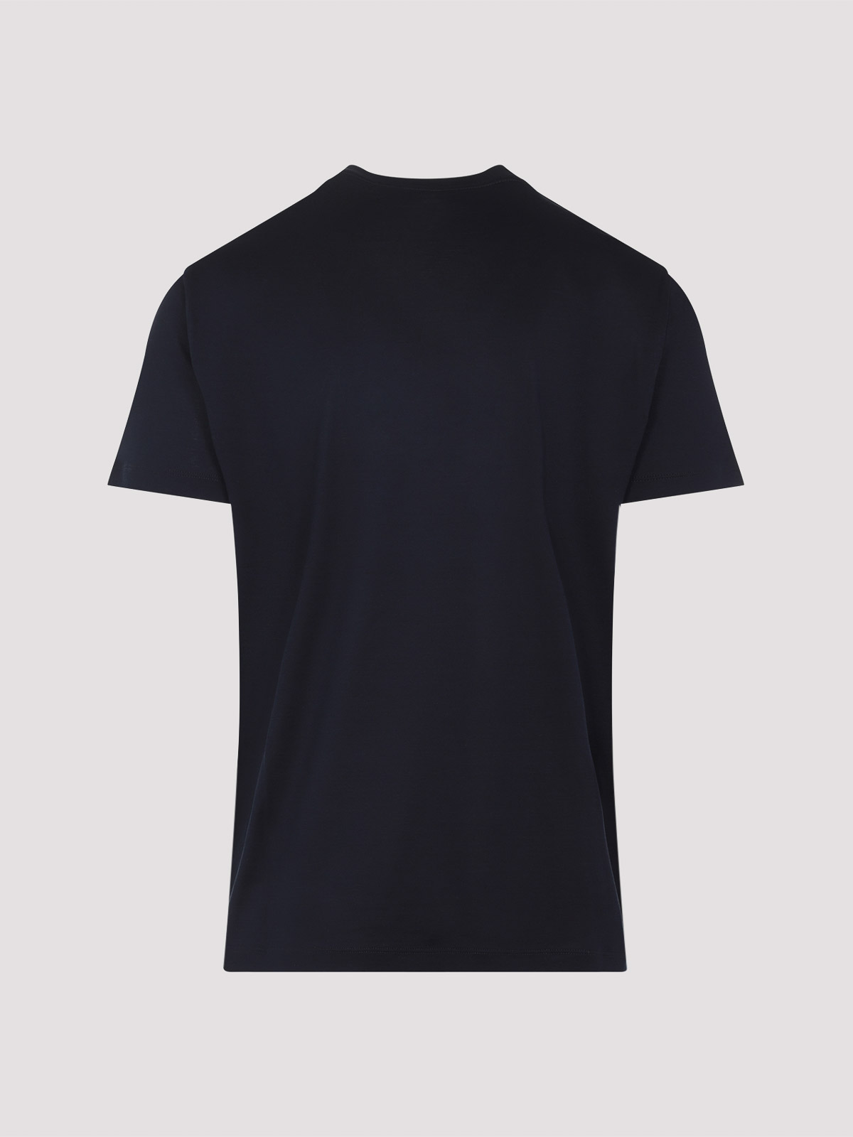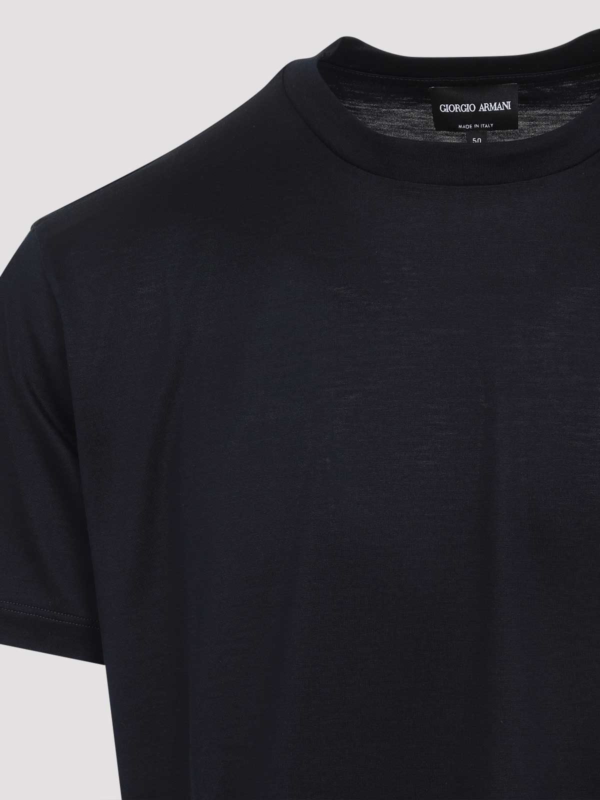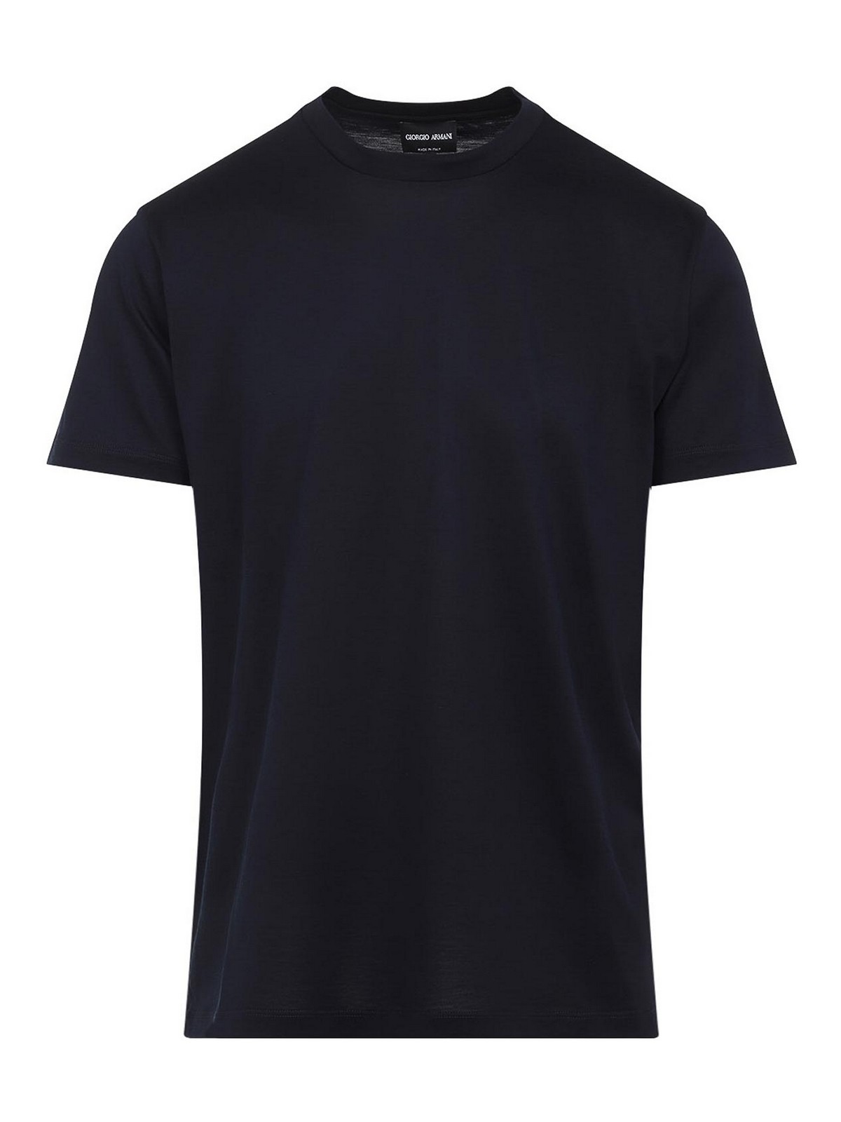 Giorgio armani blue silk t-shirt. dark blue silk and cotton, round neckline, short sleeves, straight hem, regular fit.