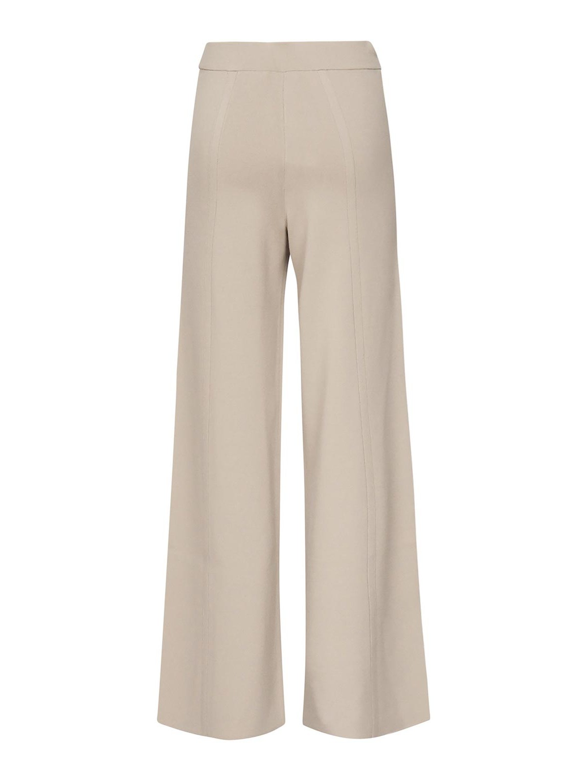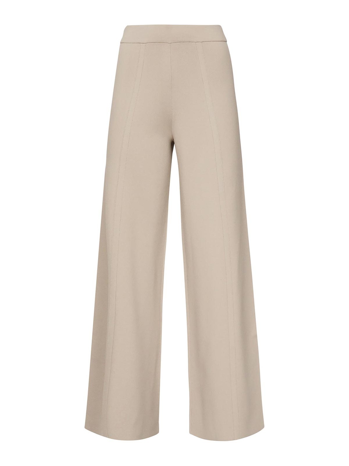 assiro long wide leg trousers crpe knit elastic waistband wide line on the leg with vertical cut pattern in the center and back color cream