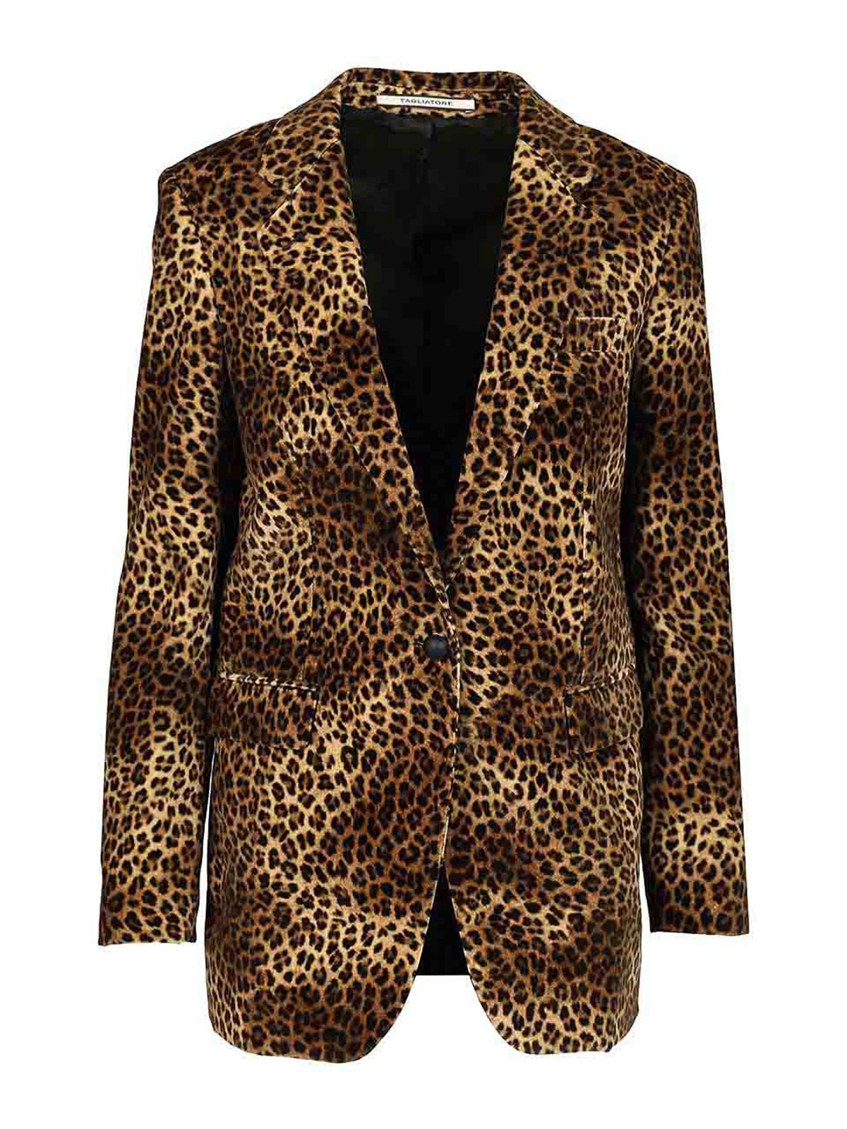Single-breasted blazer in animalier cotton by tagliatore, with lapel collar, side flap pockets, chest pocket and back vent