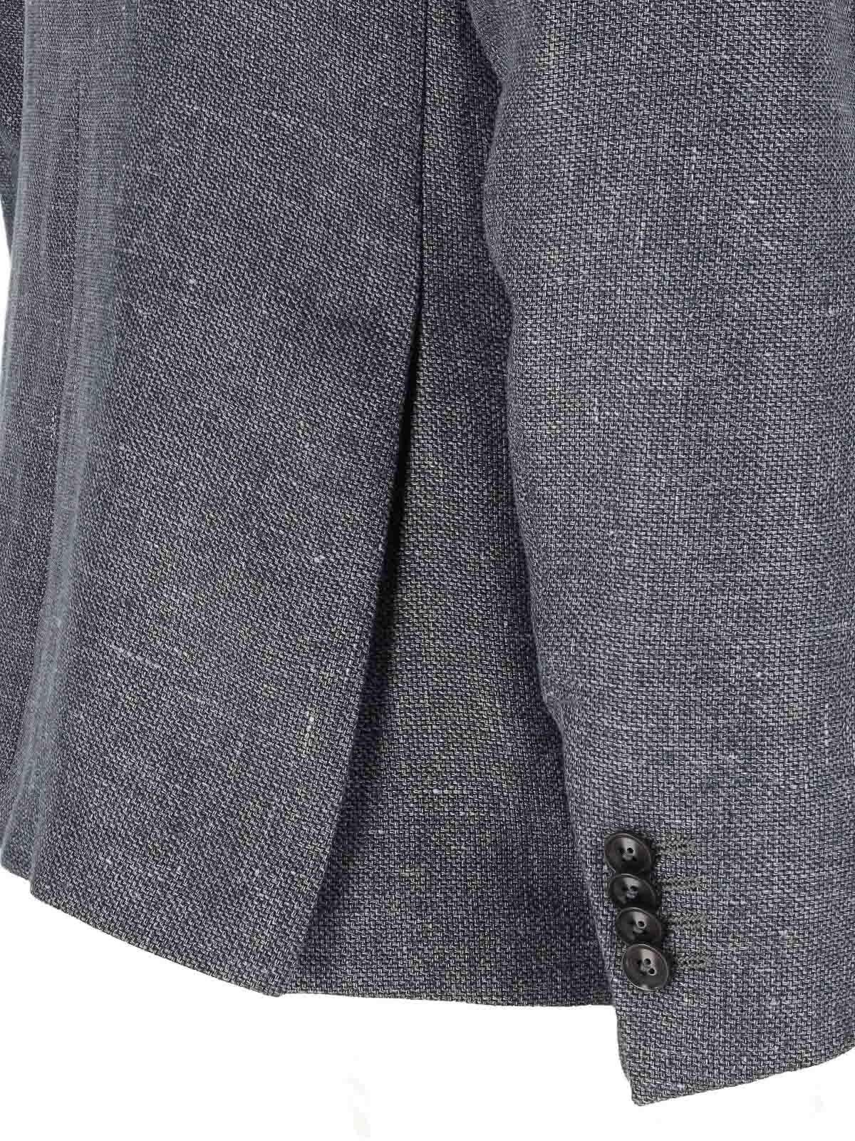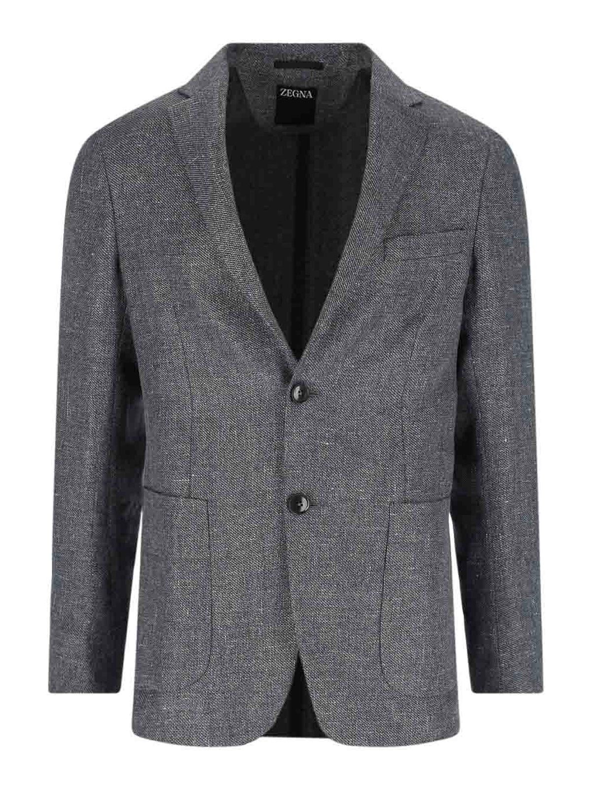 Zegna single-breasted blazer in linen and wool blend, v-neck, single-breasted fastening, long sleeves, two front pockets, one chest welt pocket, straight hem.