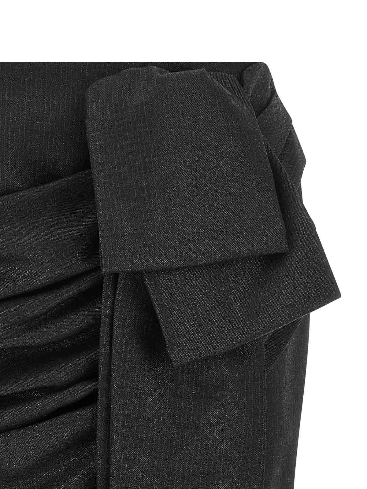 Mini 'alejandrina' skirt in wool blend canvas worked with thin pinstriped metallic thread, draping and decorative band with front bow, back zip closure, lining.
