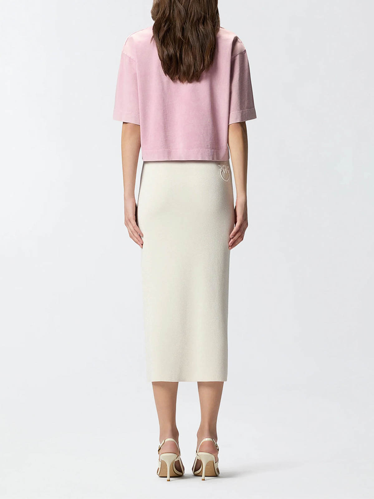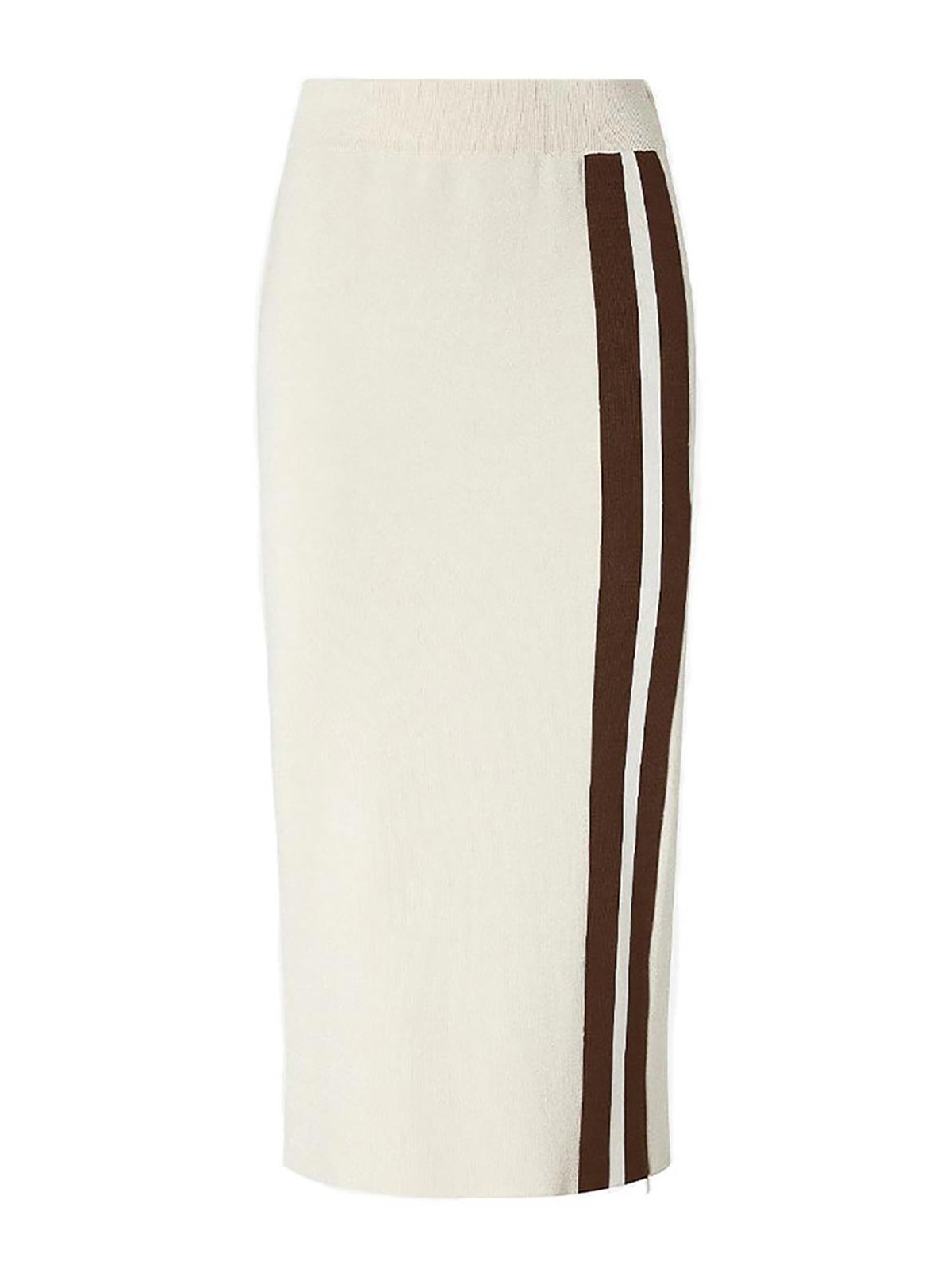 Pinko fitted midi skirt with contrasting bands, featuring a comfortable ribbed waistband for added comfort. made from technical sweatshirt-effect piqu fabric embellished with a very fine luminous yarn and two contrasting side bands on the front. also cus