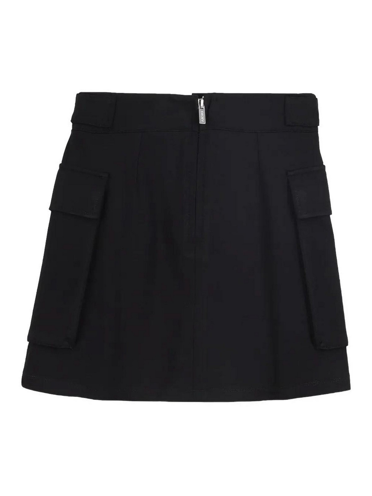 Skirt with black logo on the back with zip, side cargo pockets, loops with logo