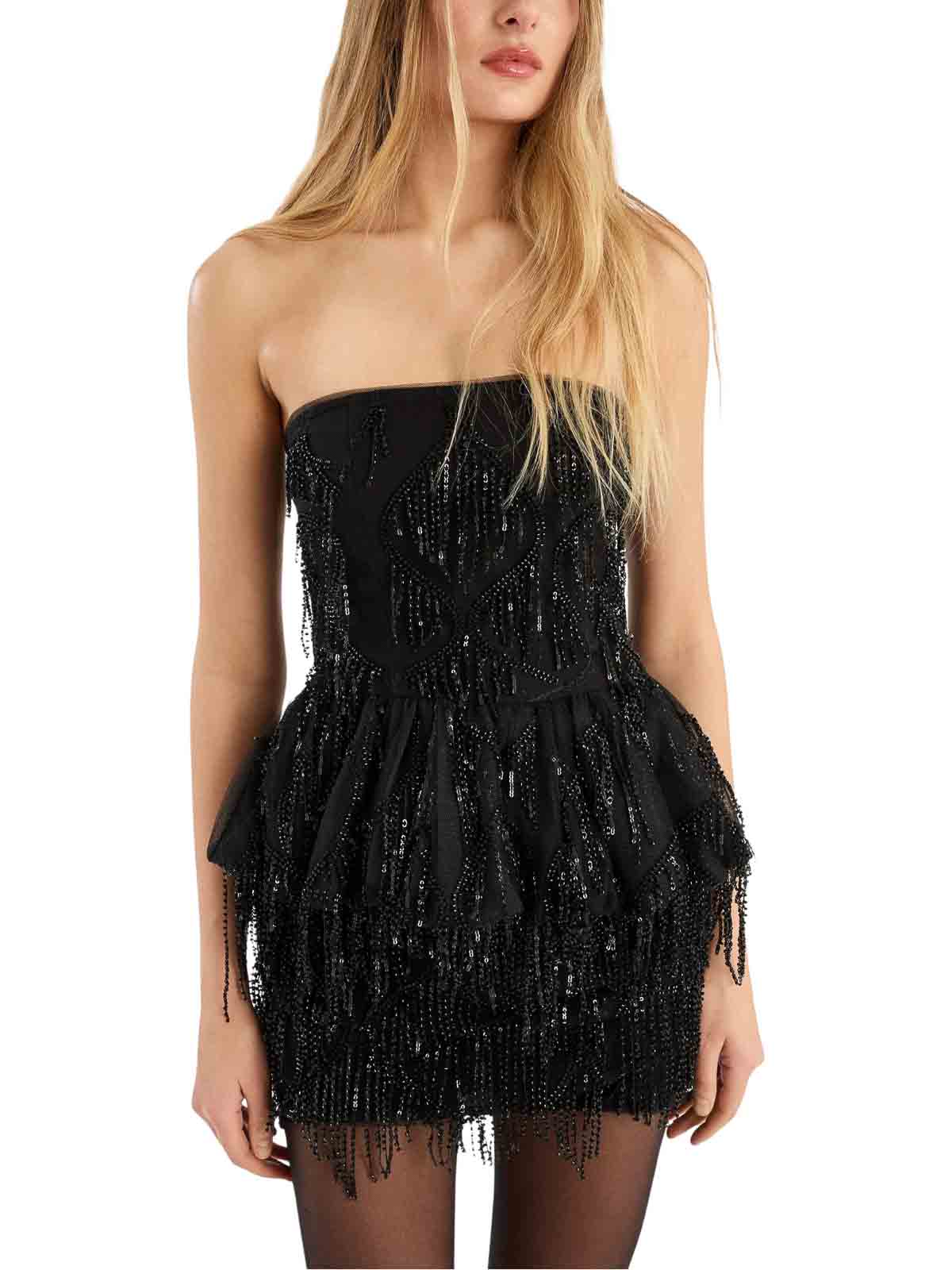 Black decoration with sequins with fringes design with straight edge