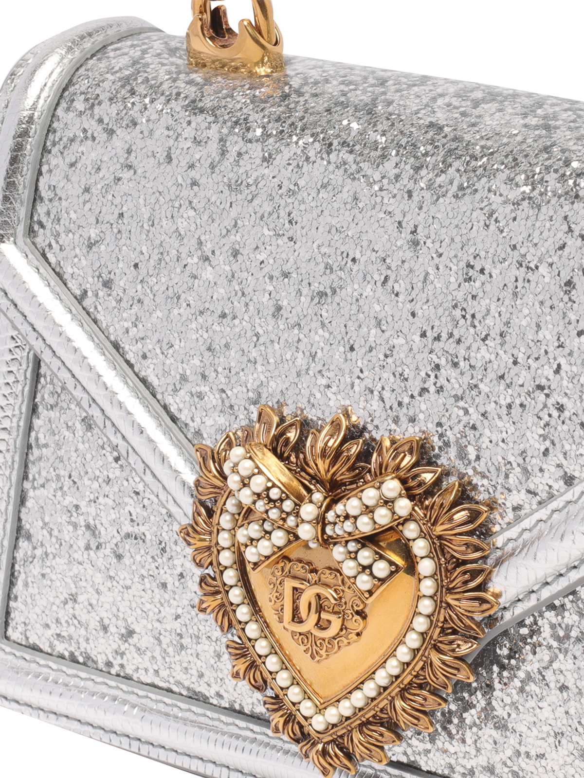 Dolce Gabbana silver devotion small bag magnetic closure inner pocket one handle adjustable shoulder strap