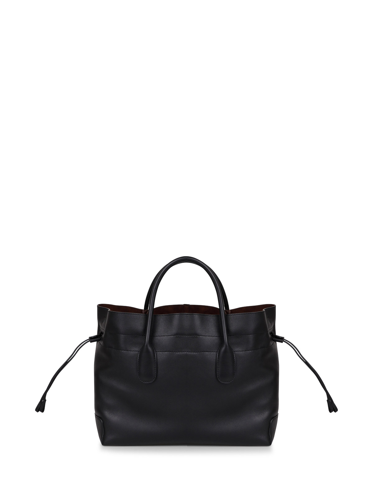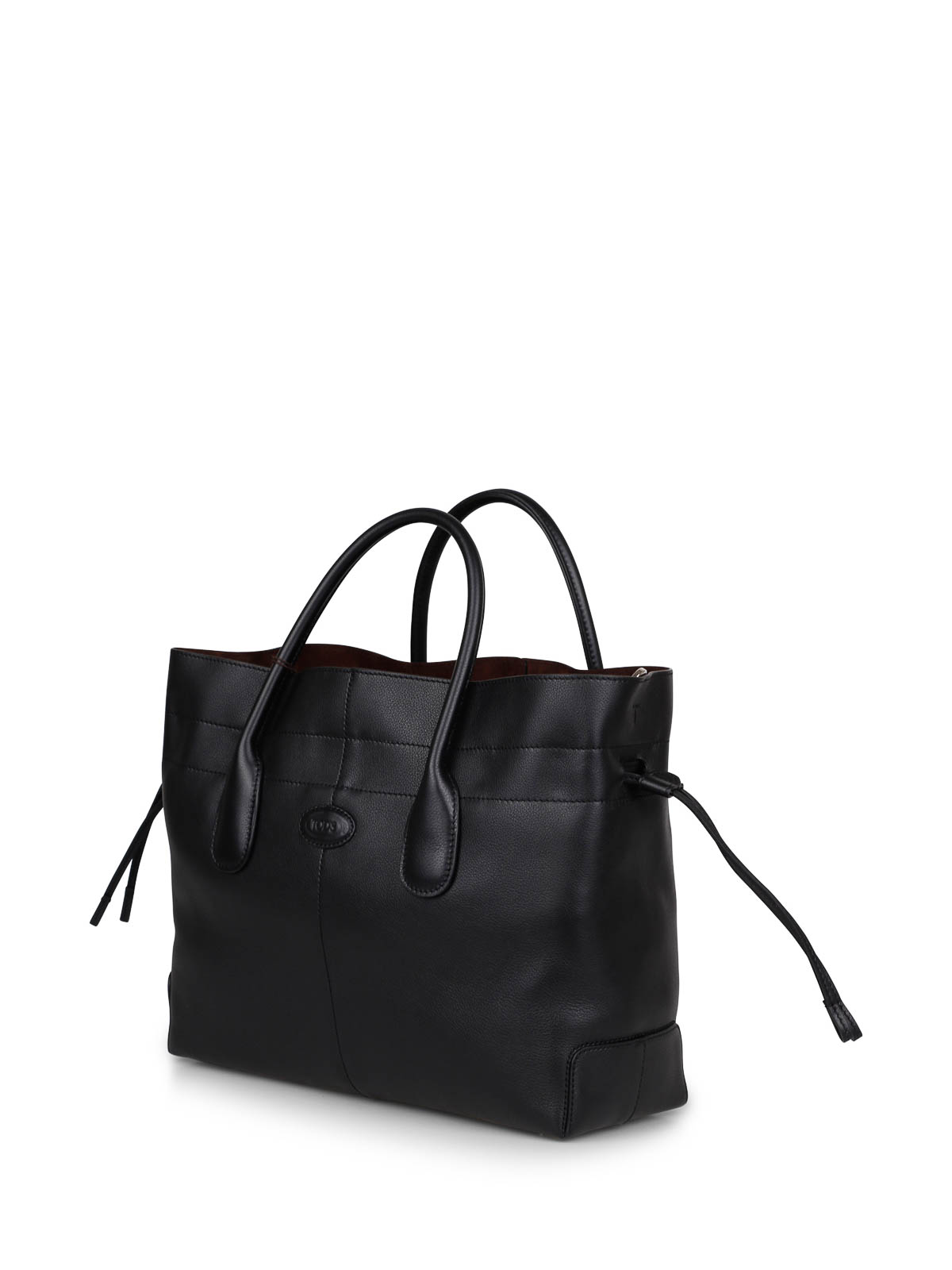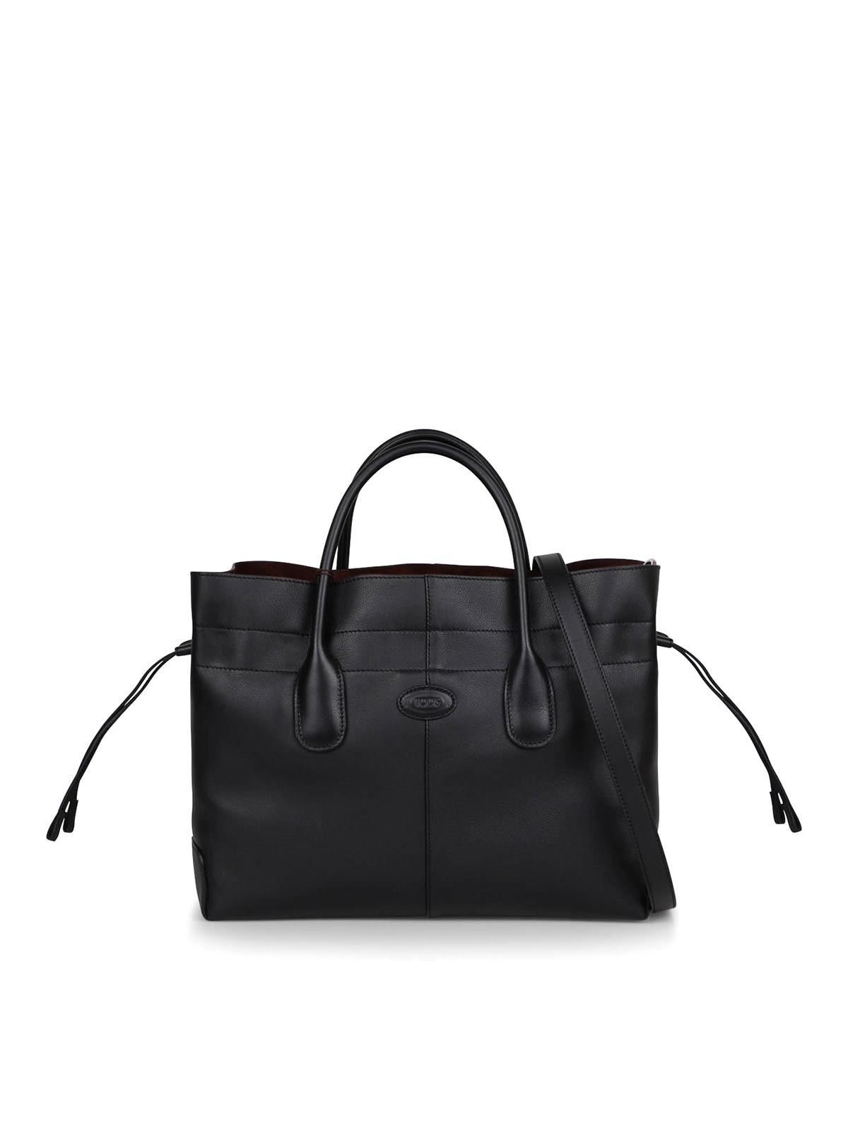 Small drawstring tote bag by tod's hammered texture front logo application adjustable and removable two round drawstring handles single compartment internal gusseted pocket removable pouch leather