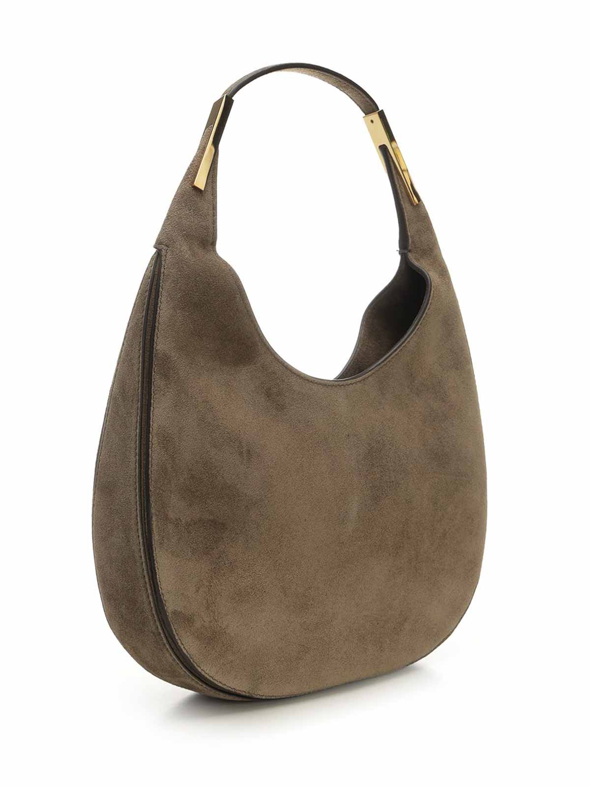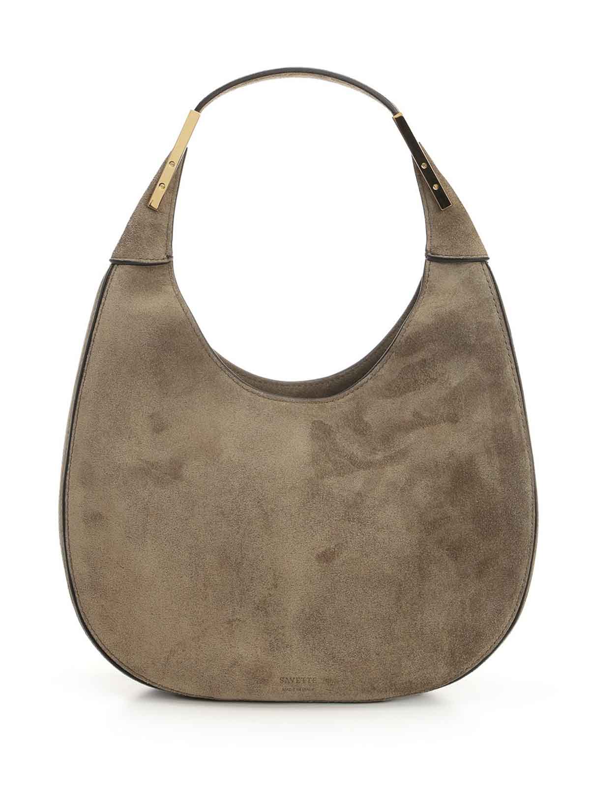 Savette's small florence hobo bag in suede calfskin features a suede lining, top handle, and drawstring closure.