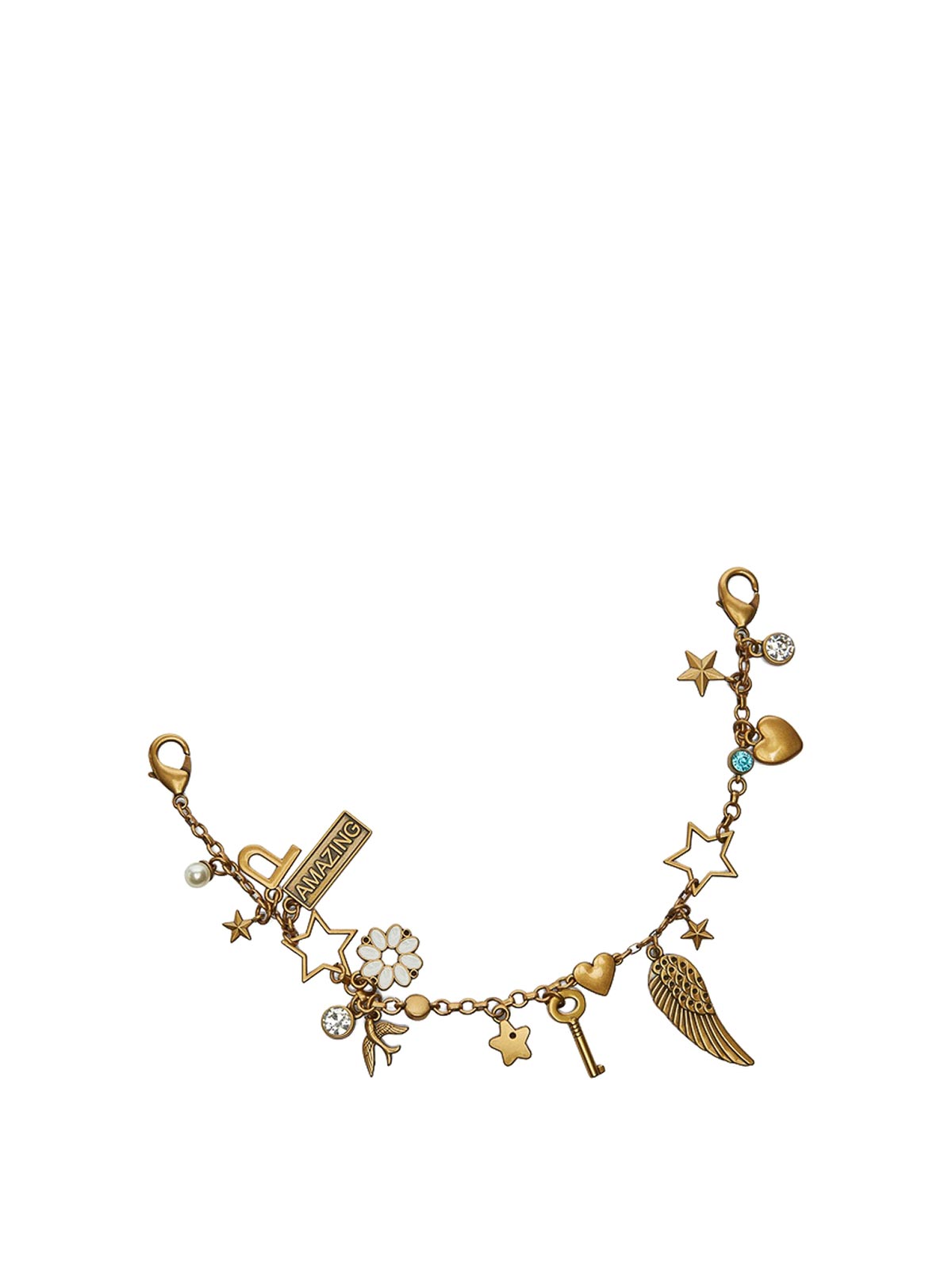 Antique, tone chain multiple charms wing charm flower charm star charms heart charm lobster clasp