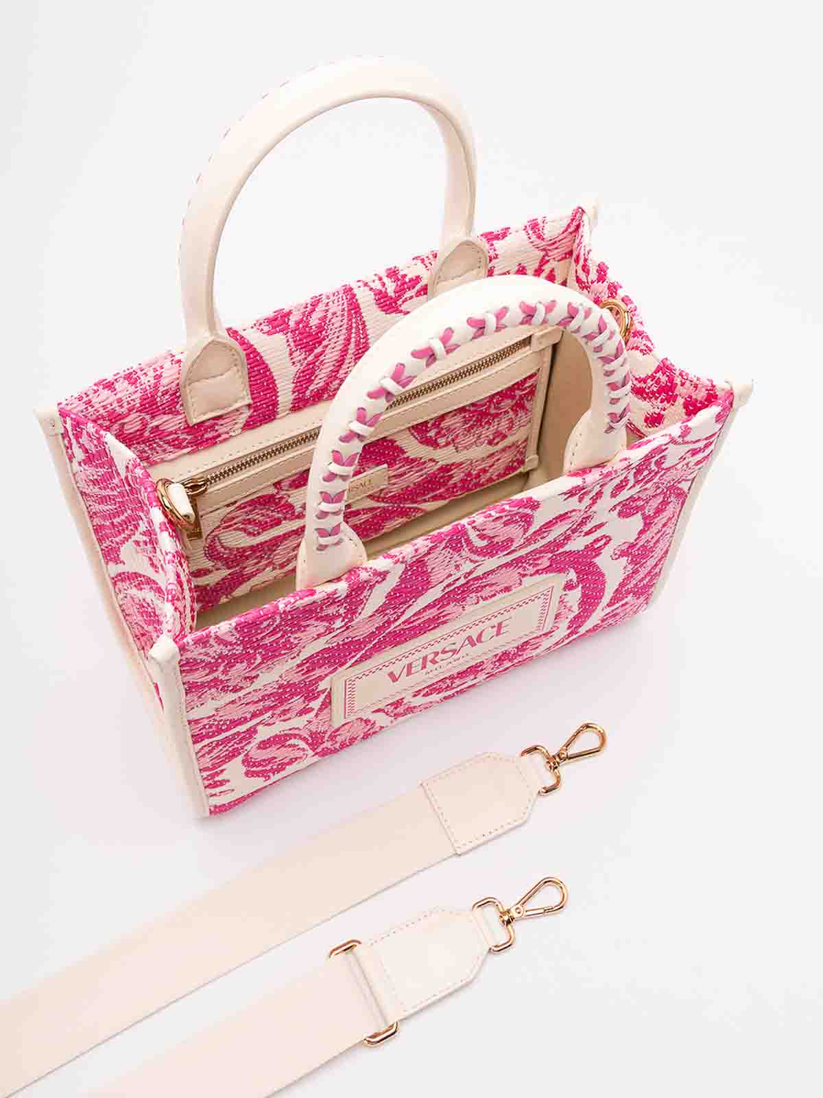 VERSACE: totes bags - Small Tote Rafia `Barocco` And Calf Leather