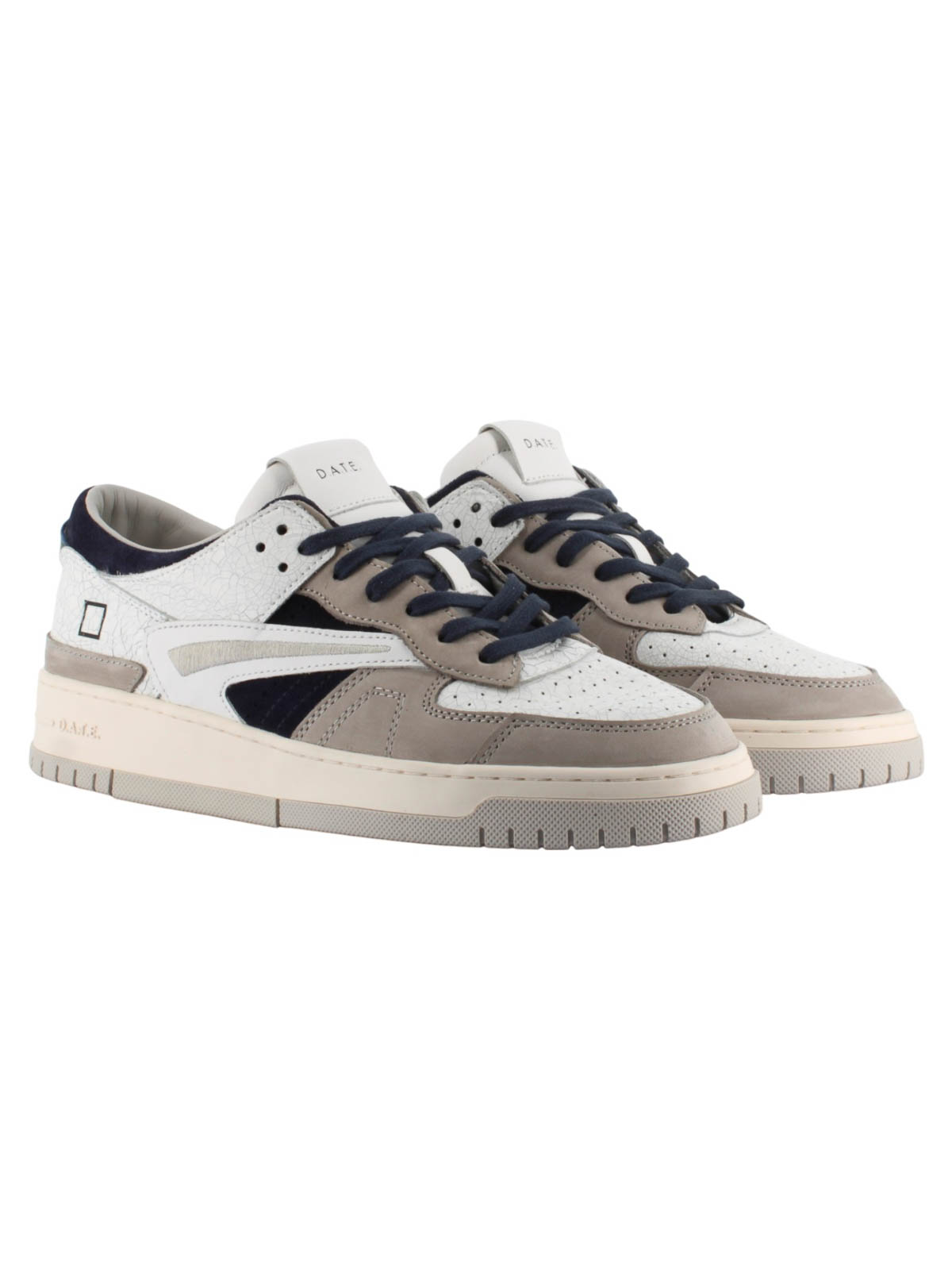 D.a.t.e. tournament pop white-blue the tournament pop white-blue sneaker from d.a.t.e. combines contemporary design and retro details in a silhouette inspired by the world of tennis. Made of white crackle-effect leather with beige and navy blue suede inserts, it features a handcrafted construction that enhances the quality of the materials. the square logo engraved on the side and the lettering d.a.t.e. imprinted on the sole complete an authentic and sophisticated style, perfect for casual and metropolitan looks.