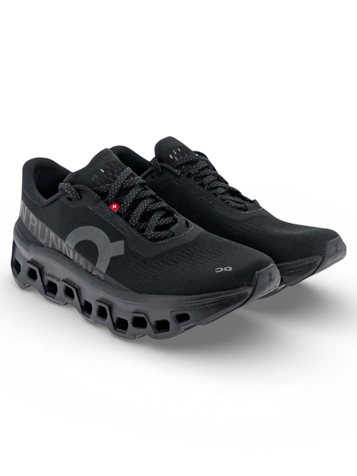 On running cloudmonster 1 black, version redesigned for everyday use, cloudmonster 1 combines advanced cushioning and reactivity in a light and resistant structure. the cloudtec system guarantees soft landings and energetic take-offs, while the recycled pebax speedboard ensures a dynamic and snappy push. Helion foam absorbs impacts improving comfort throughout the day. the technical mesh upper, made in a single piece, integrates a lacing system with hidden eyelets for an essential aesthetic. the rubber outsole offers optimal grip on the asphalt, completing a silhouette designed for movement and versatility., weight: 278.1 g standard lacing drop: 8 mm cloudtec cushioning system speedboard in recycled pebax absorbent helion foam technical one-piece mesh upper hidden eyelets for minimal aesthetics rubber outsole for grip on asphalt, sole composition: compressed vulcanized rubber speedboard: recycled pebax