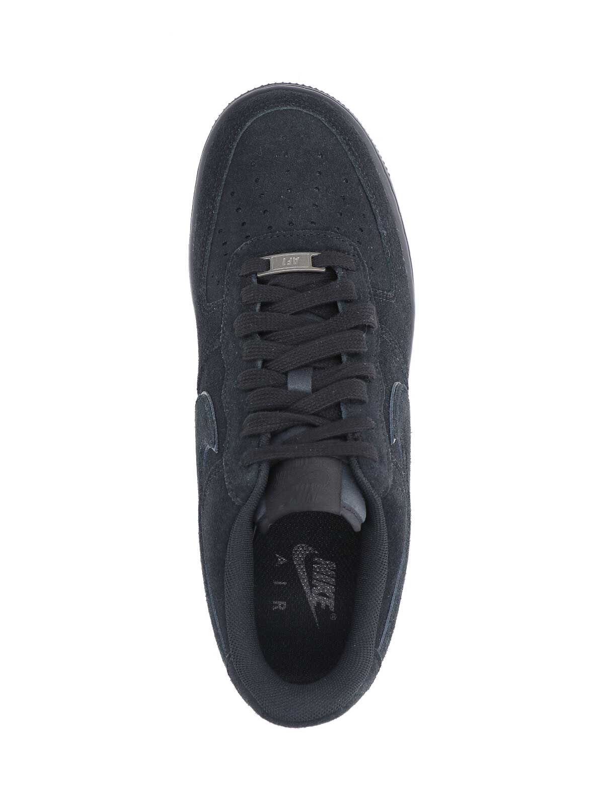 Nike air force 1 sneakers, in black suede, round toe, tongue logo label, side leather swoosh logo, rear tab logo embroidery, rubber sole.