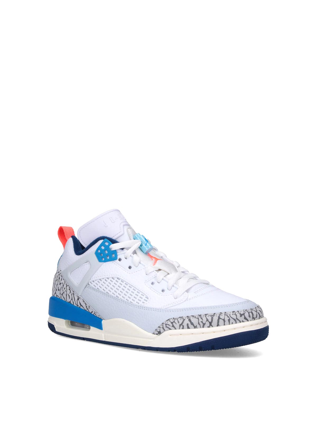 Nike jordan spizike low sneakers, in white leather, round toe, lace closure, logo on tongue, rubber details, animal print details, back tongue, logo on back tab, rubber sole.