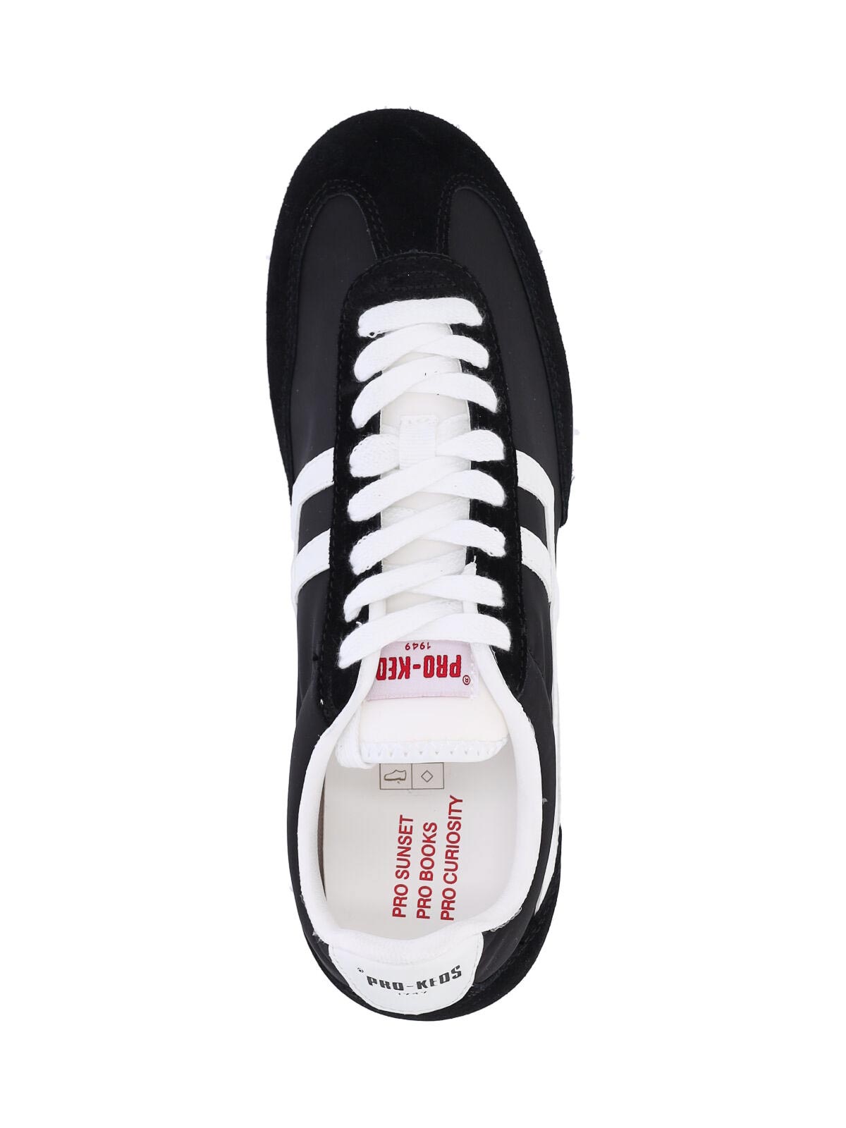 Pro-keds 1949 racer 77 sneakers, in black leather, tone-on-tone fabric details, round toe, lace-up closure, logo patch on the tongue, contrasting side embroidery, rear tab logo print, rubber sole.