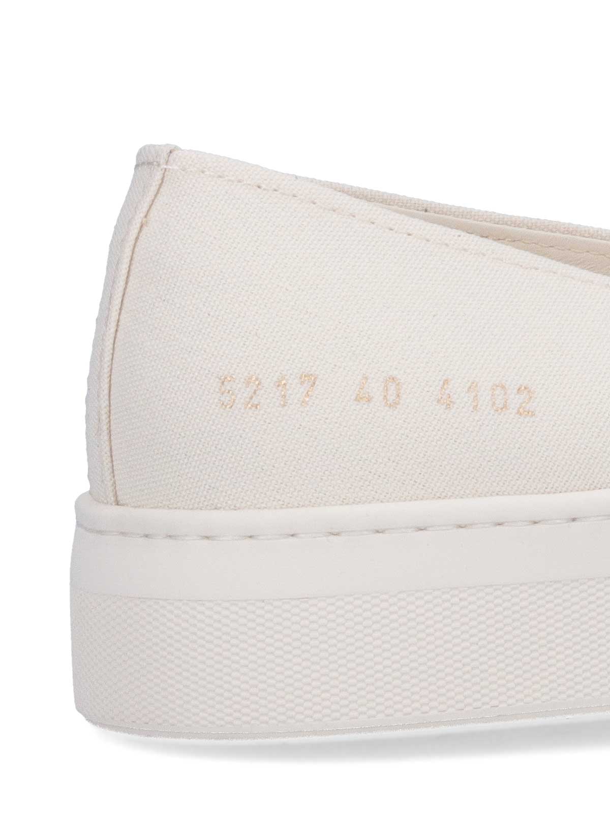 Common projects slip-on sneakers in cream canvas, round toe, slip-on fit, side golden number print