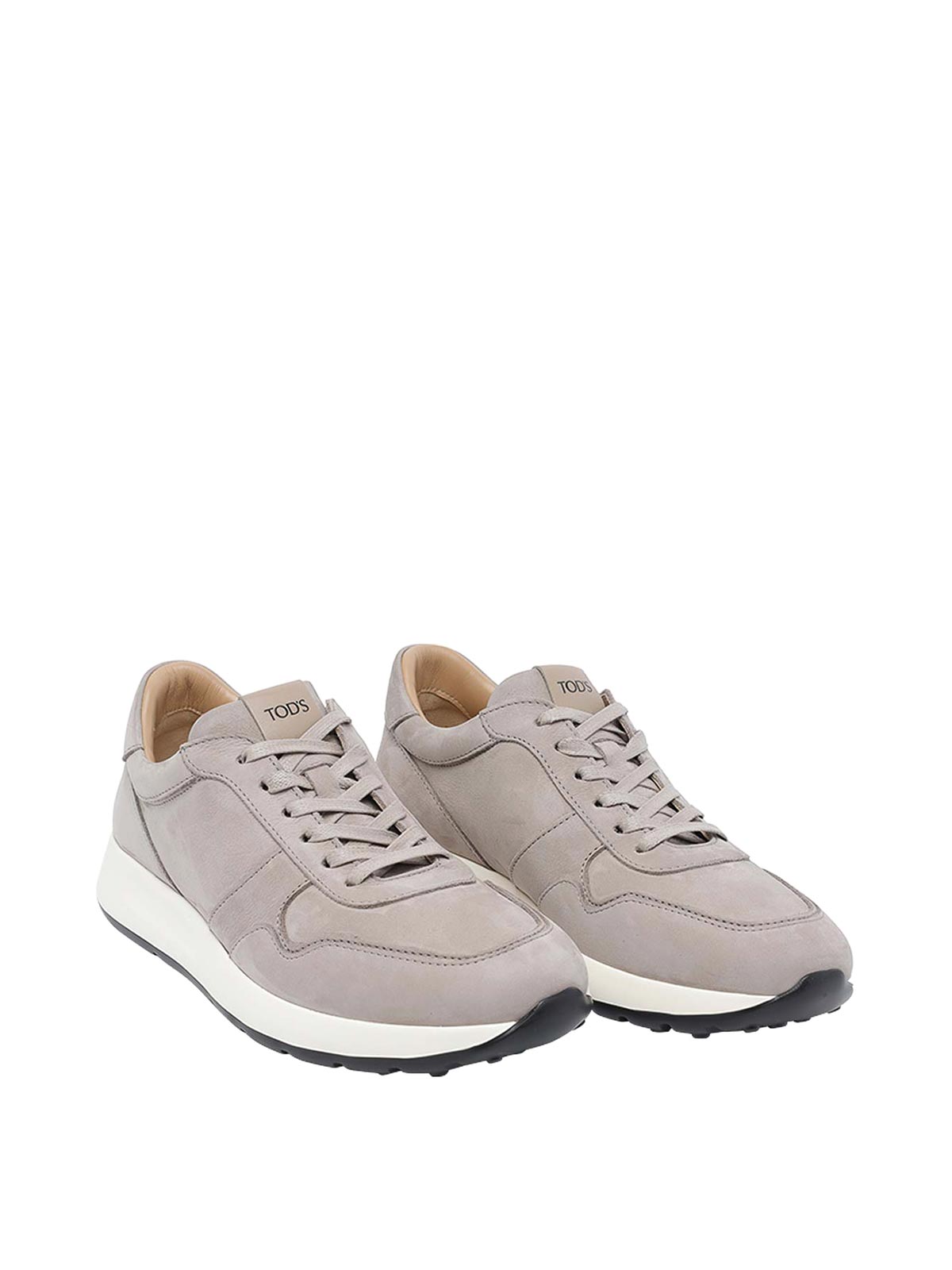 Tod's grey sneakers, suede upper, laces closure, round toe, logo