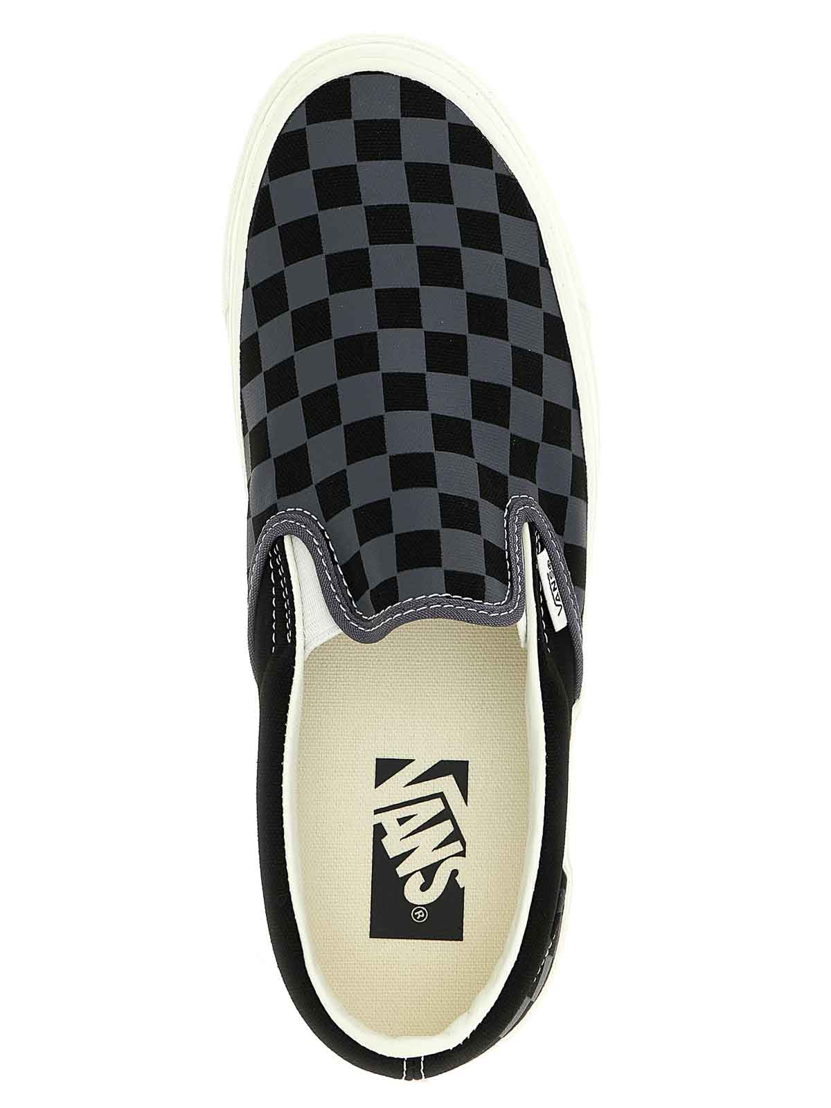 Checkerboard-print 226g screen-printed canvas 'premium slip-on 98' sneakers with slip-on style, full-grain leather lining, higher sole hips with glossy finish, original 90s osnaburg reinforcement ribbon, foam all-day-comfort (adc) midsole, rubber sole.