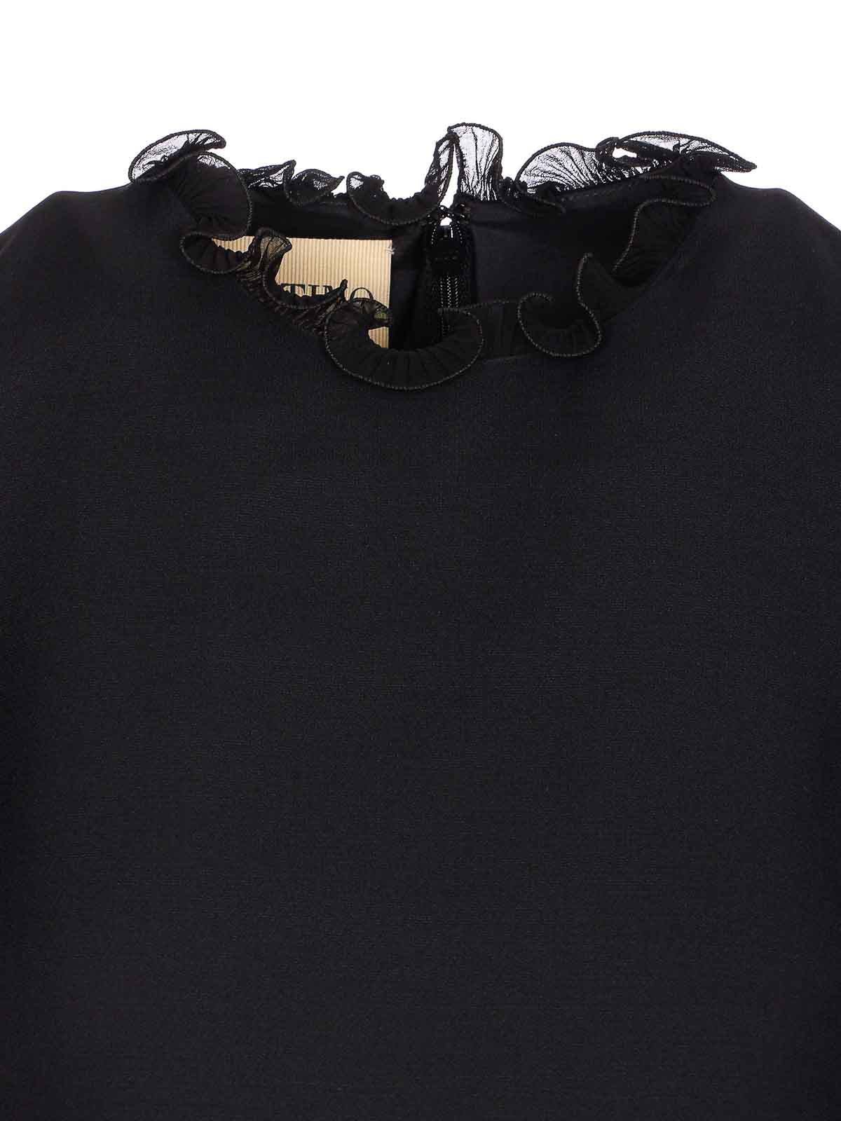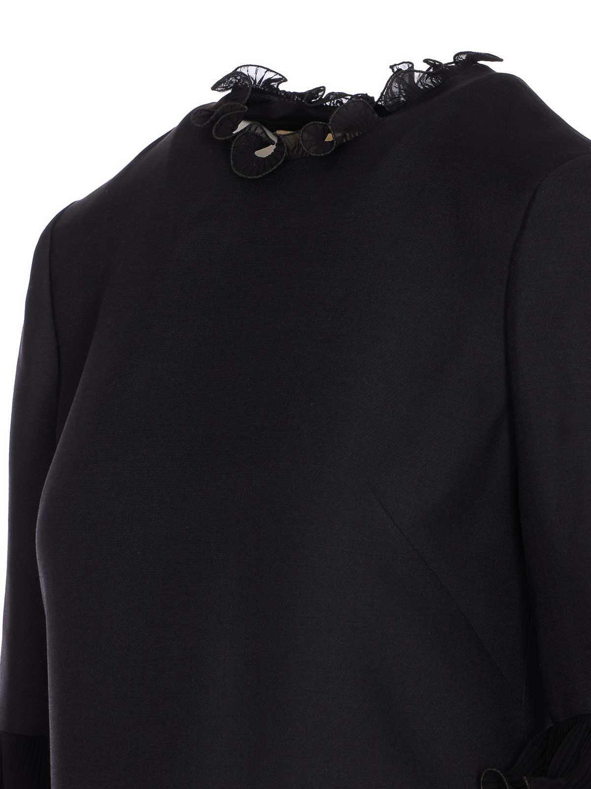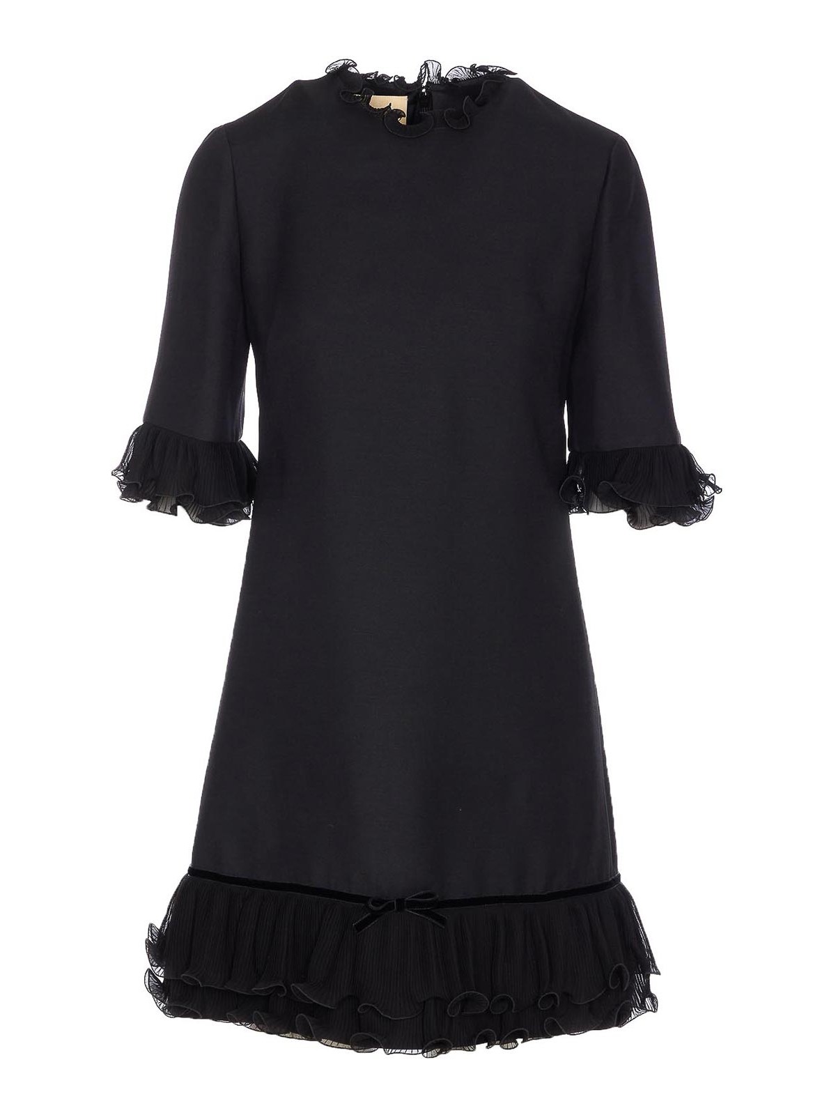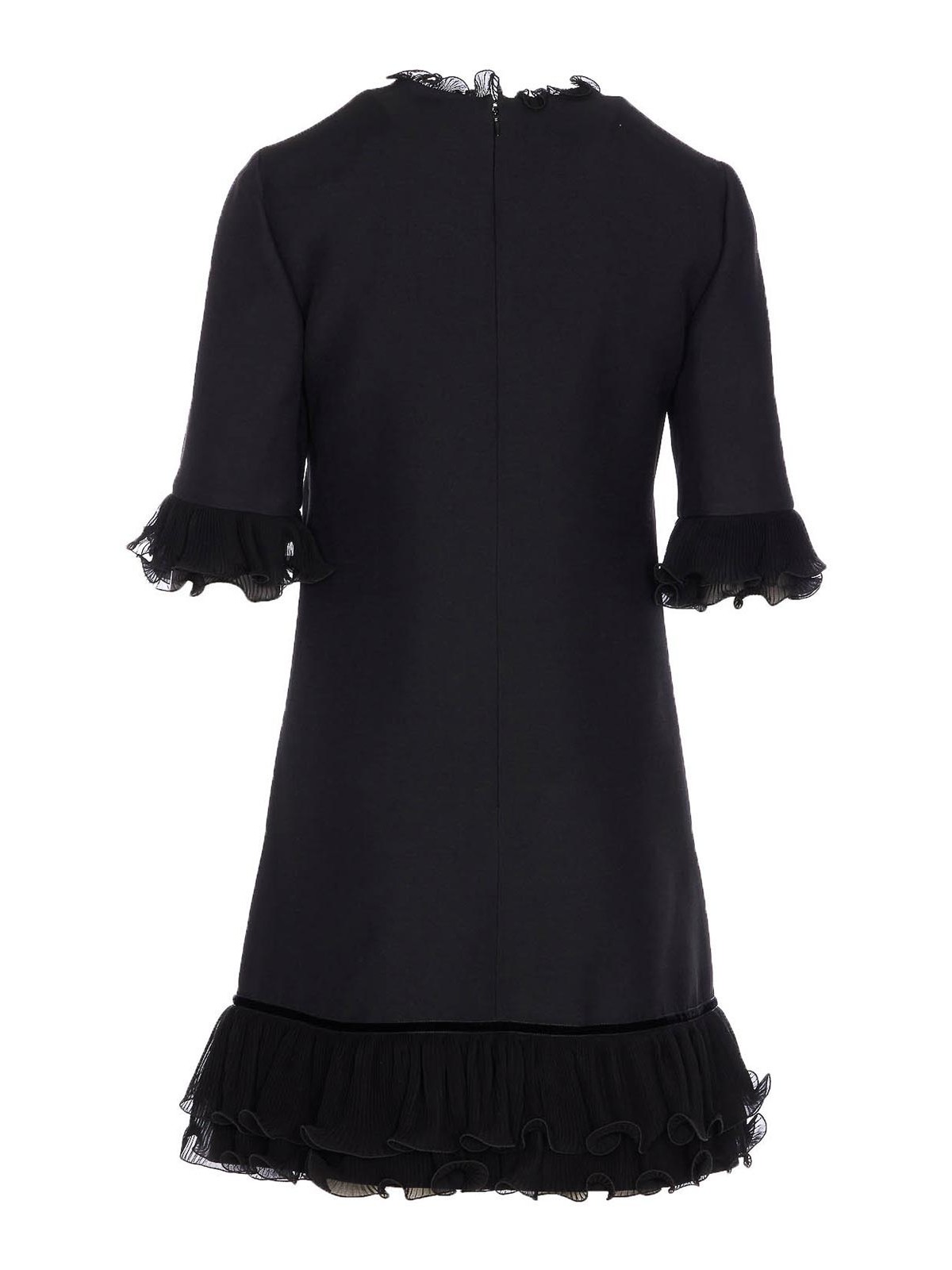 Valentino garavani black dress, back zip closure, shorts sleeves, rouches pleated detail at profiles