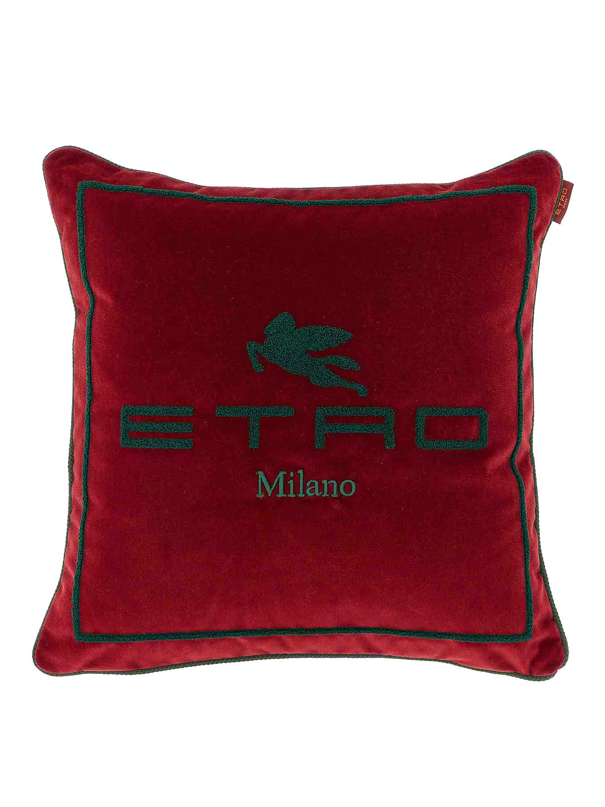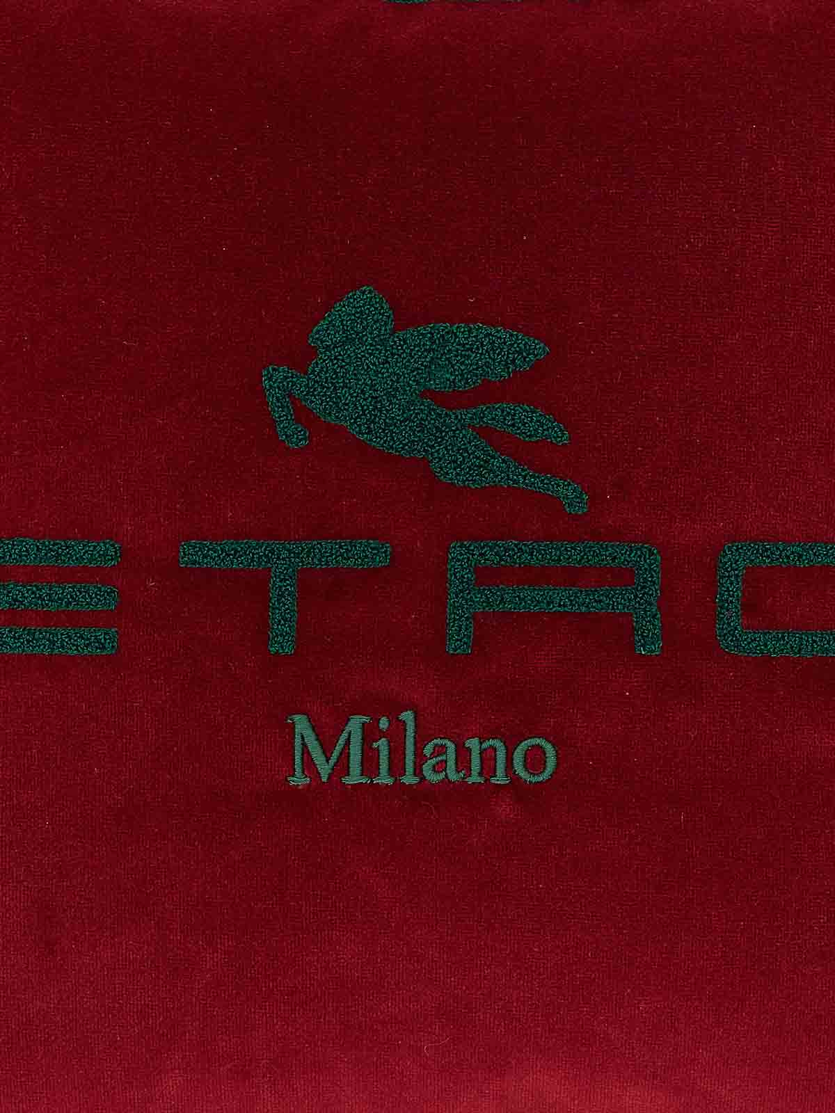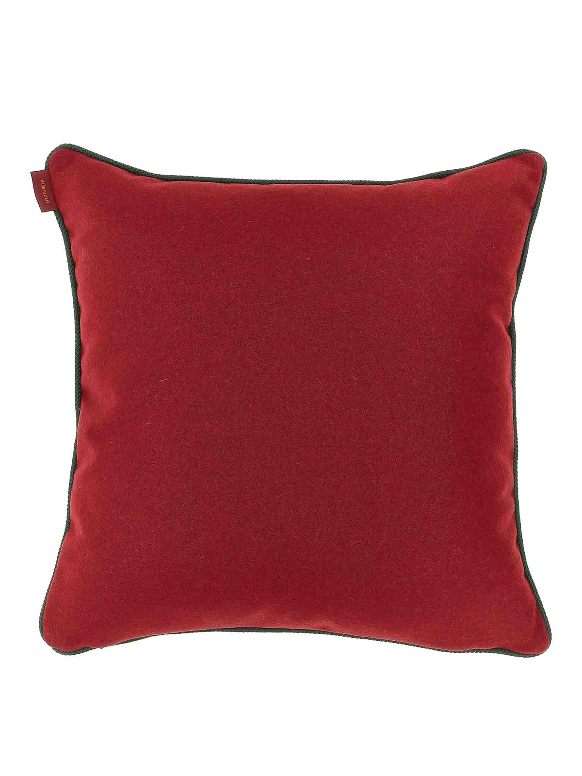 Peached and cool wool cotton cushion, front terry cloth logo embroidery, side zip closure.