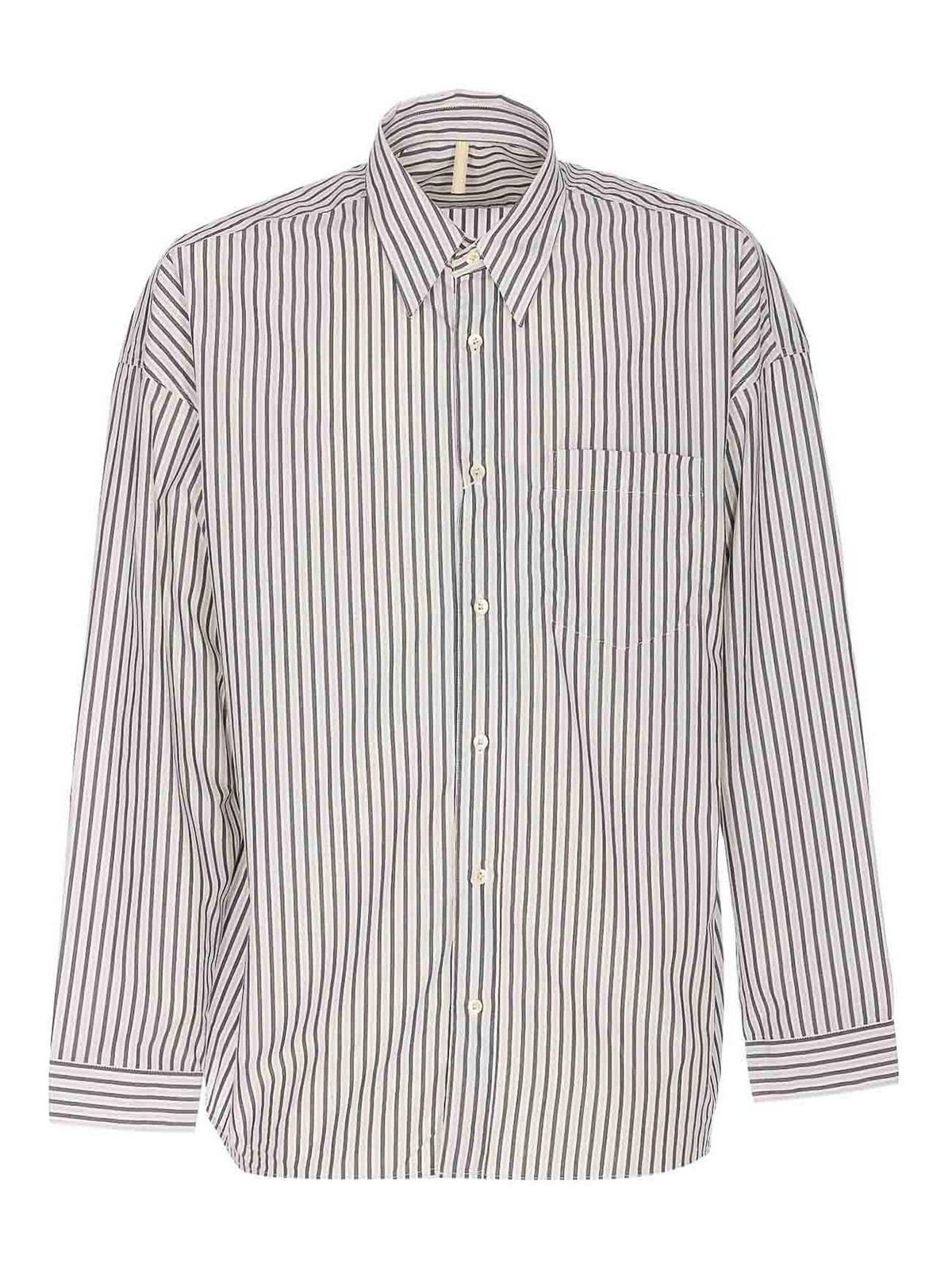 Sunflower anthracite stable shirt, buttons closure on the front, collar, button on cuffs, striped, pocket on the front