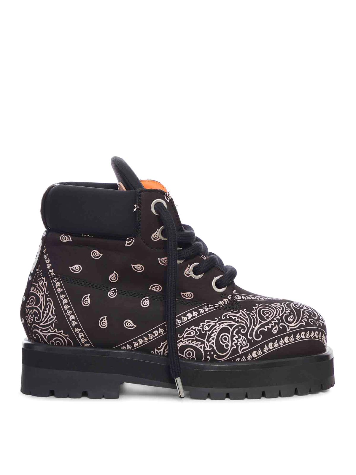Padded design, round toe, tone, on, tone lace, up, all, over paisley detailing, contrasting orange tongue, prominent logo on the, thick with non, slip tread, padded collar, color black