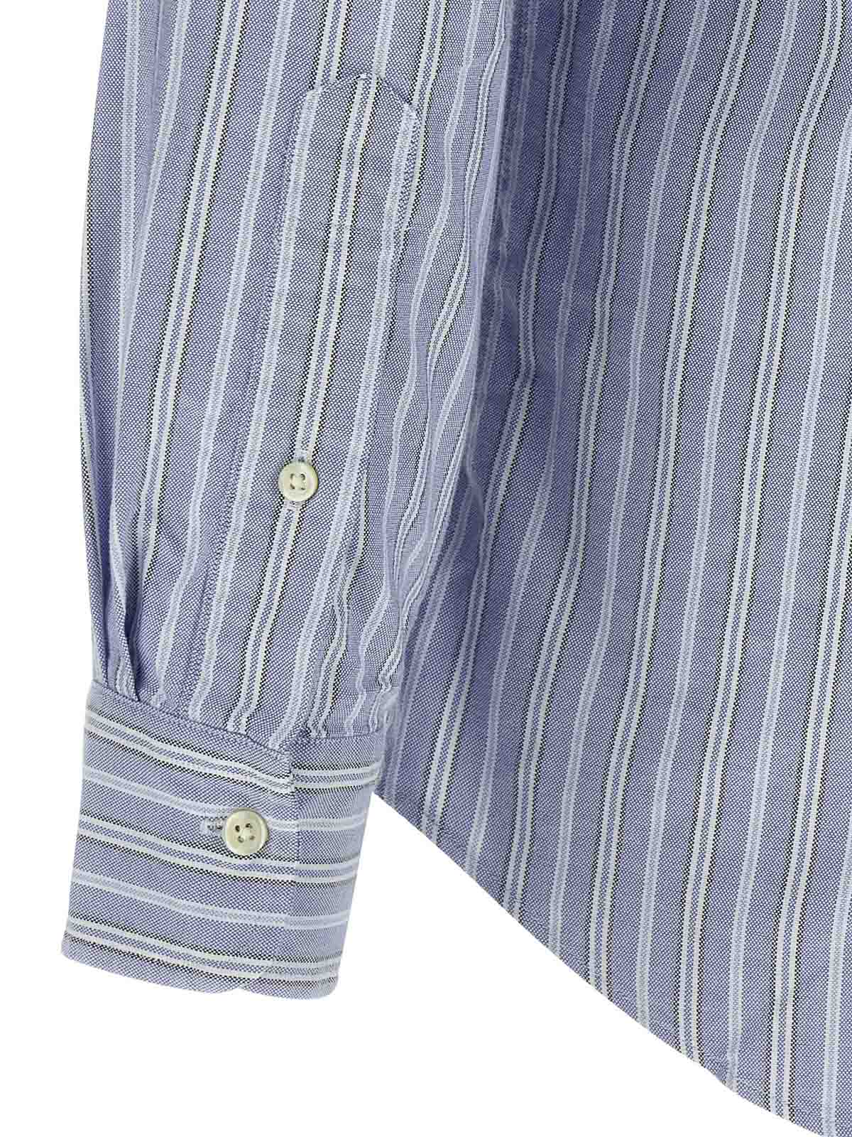 Oxford striped cotton shirt, with logo embroidery, front button closure, long cuffed sleeves.