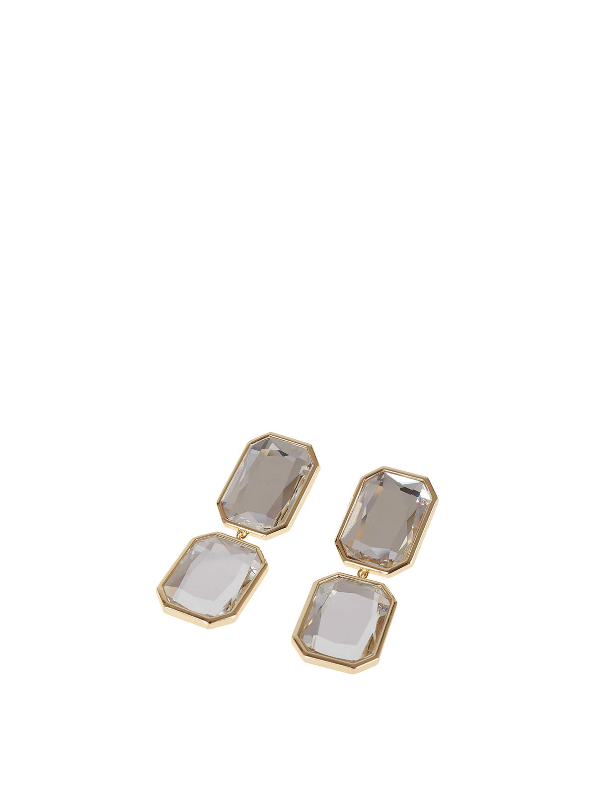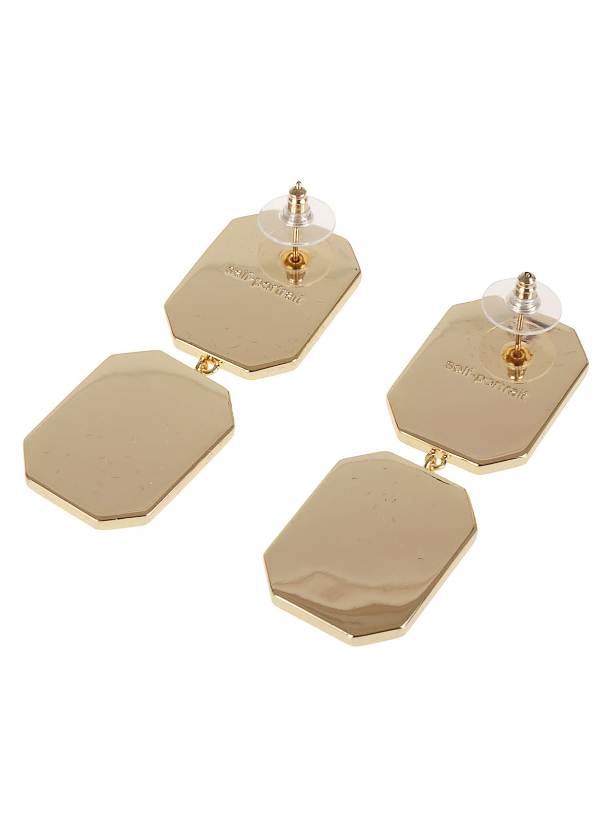 Oversized crystal drop earrings by Self-Portrait. Gold-plated brass with a crystal center.