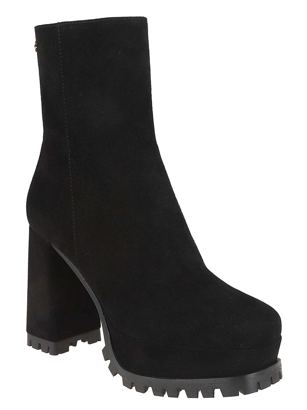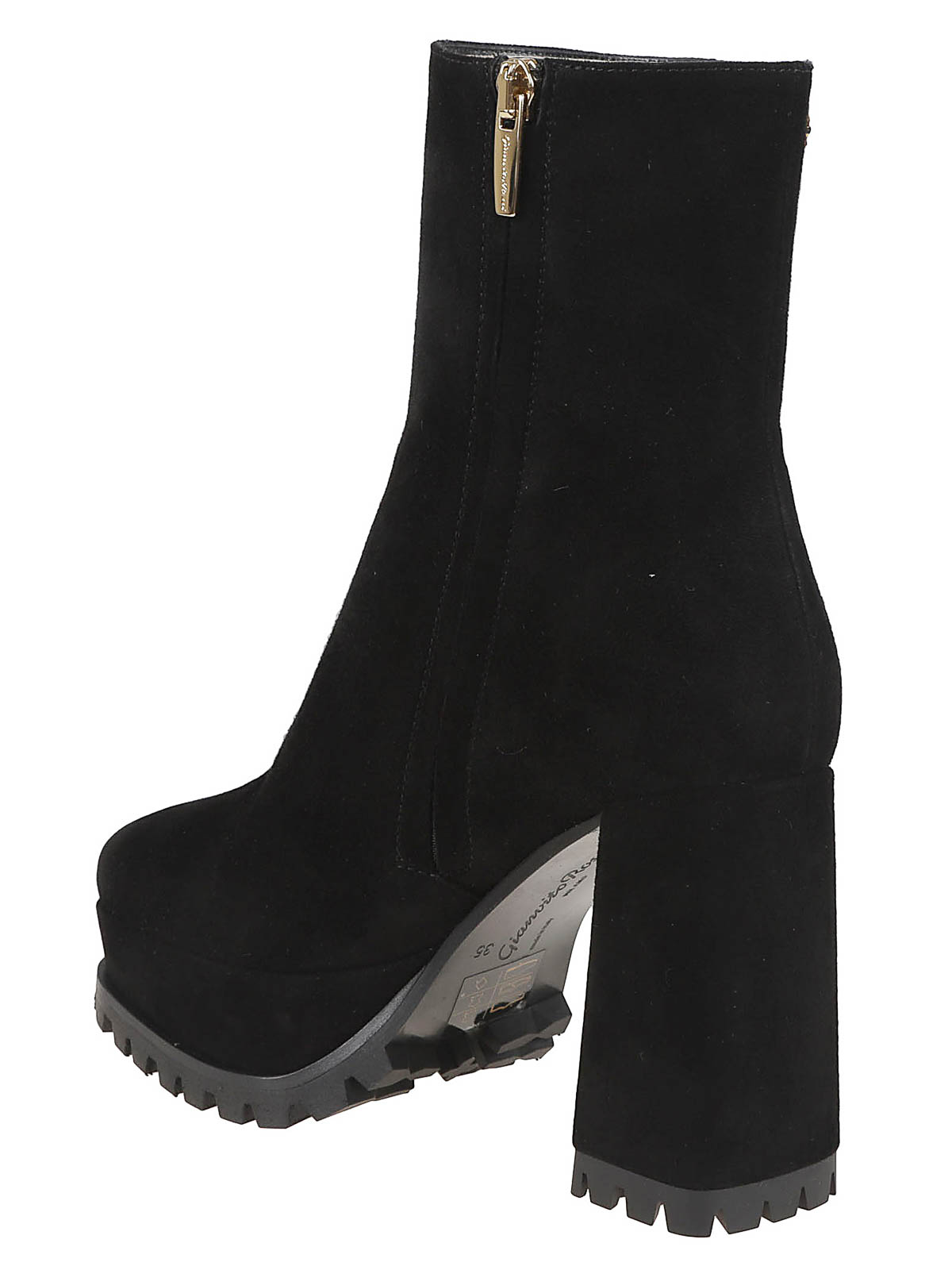 Harlem suede ankle boot by Gianvito Rossi, square toe, internal zip, urban rubber sole, platform (3.5cm), covered heel (10.5cm).