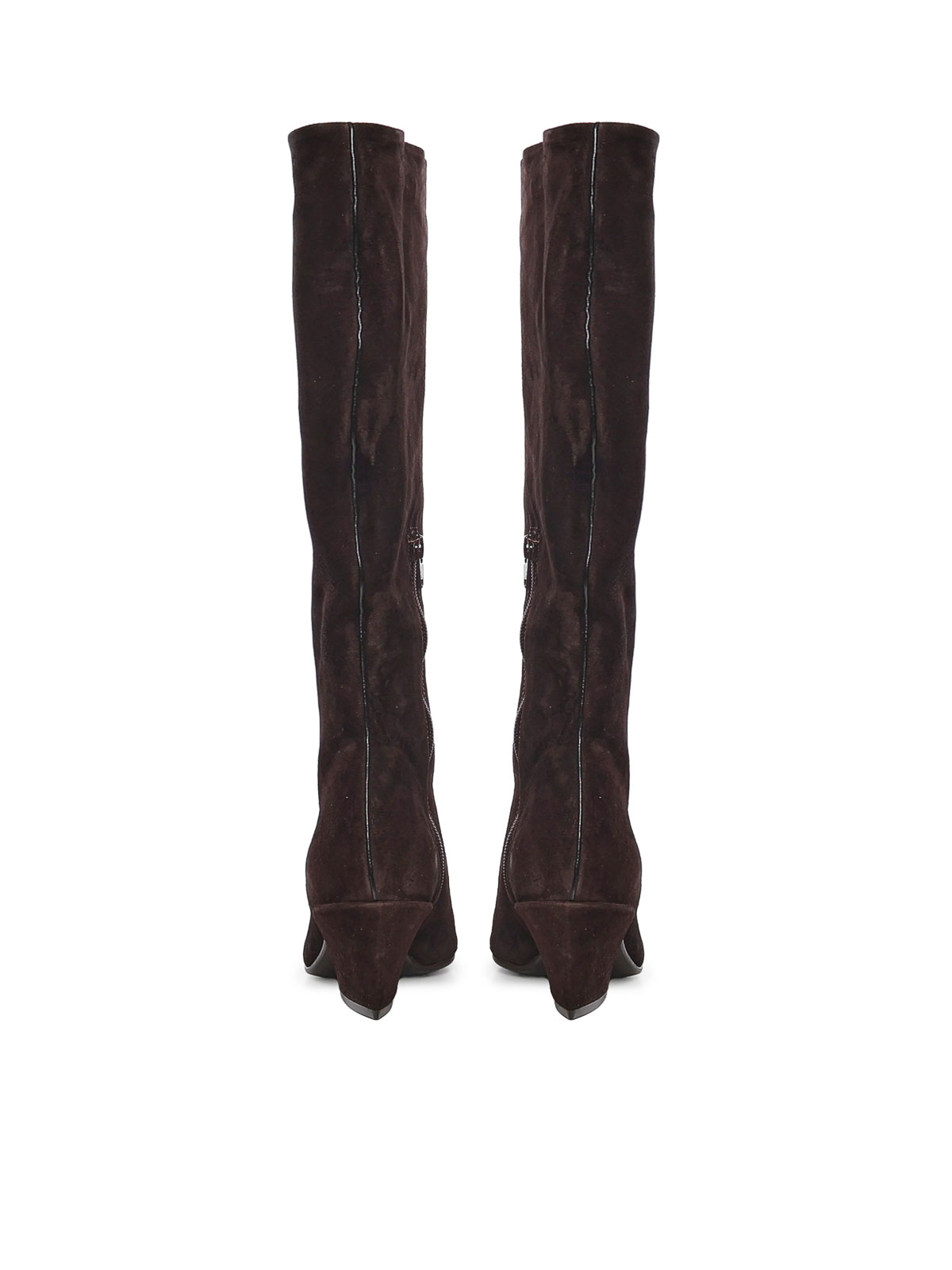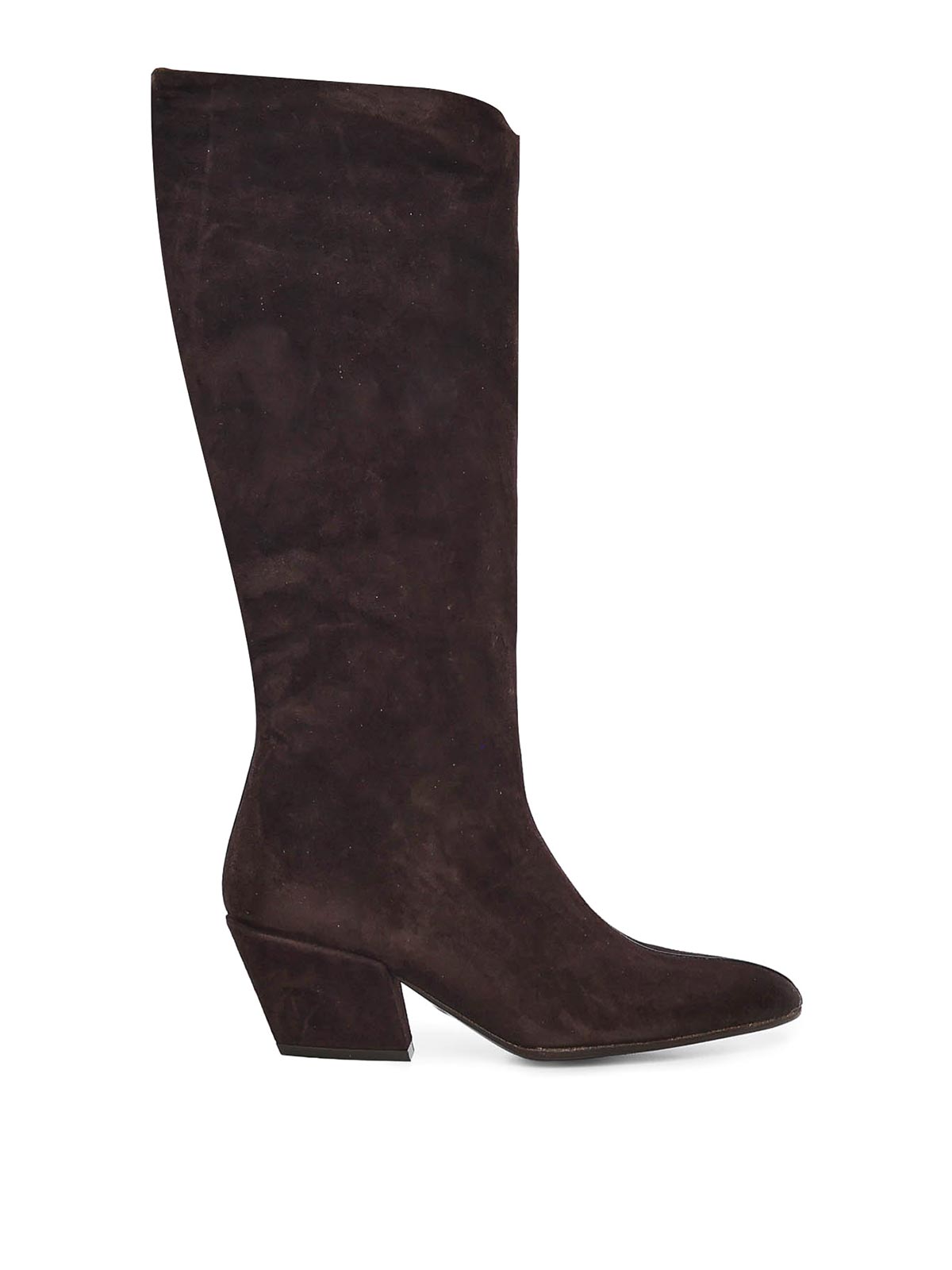 suede upper, almond toe, 6 cm heel, side zip closure, made in italy, designer color: dark brown