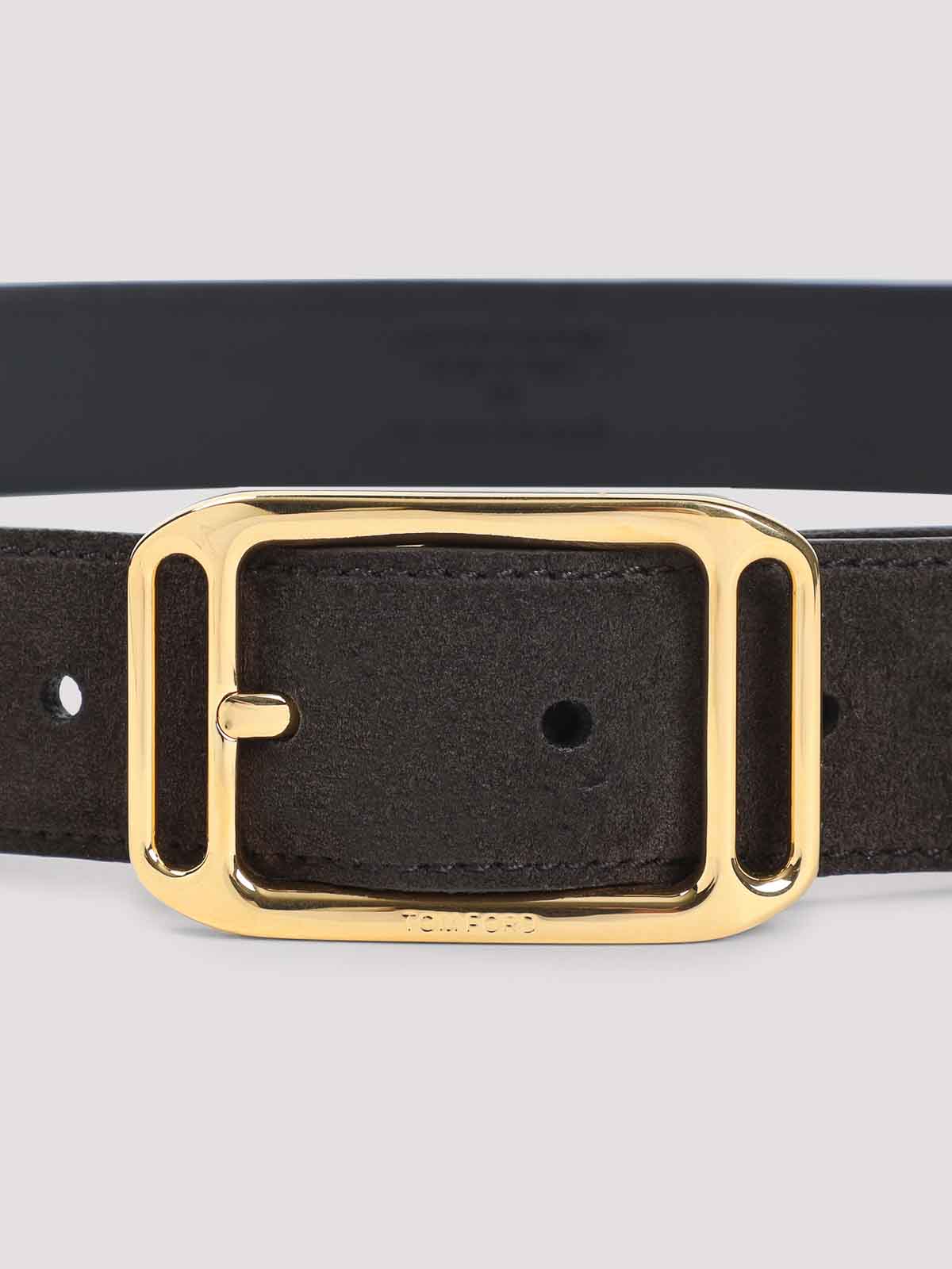 Tom ford brown belt crafted from brown golden, tone buckle with lasered logo adjustable fit embossed logo