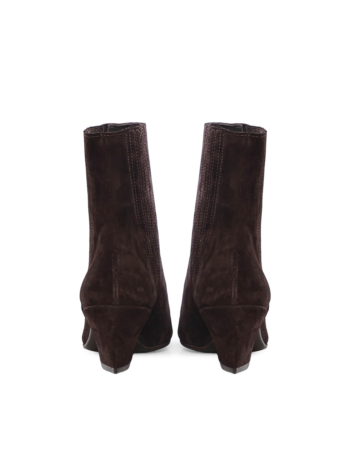 suede upper, almond toe, elastic inserts, 6 cm heel, designer color: dark brown