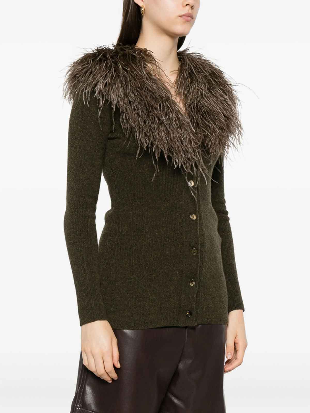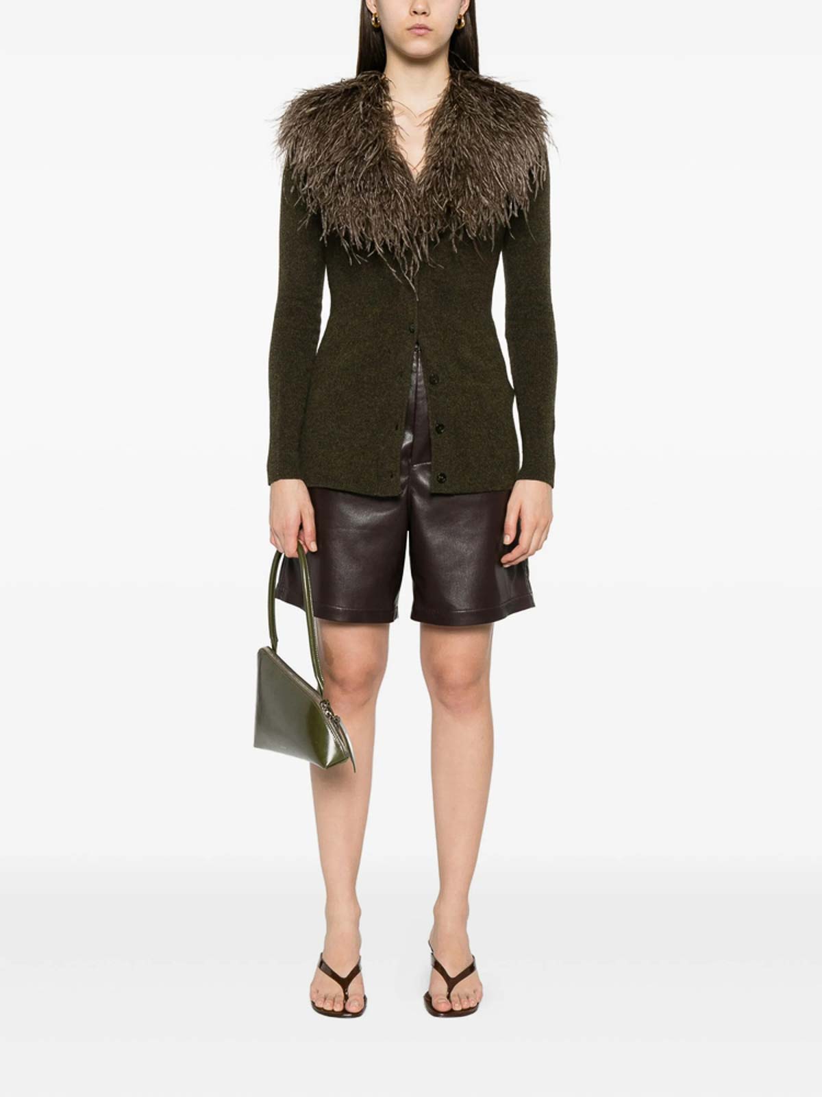 Bark green trim button long sleeves ribbed cuffs