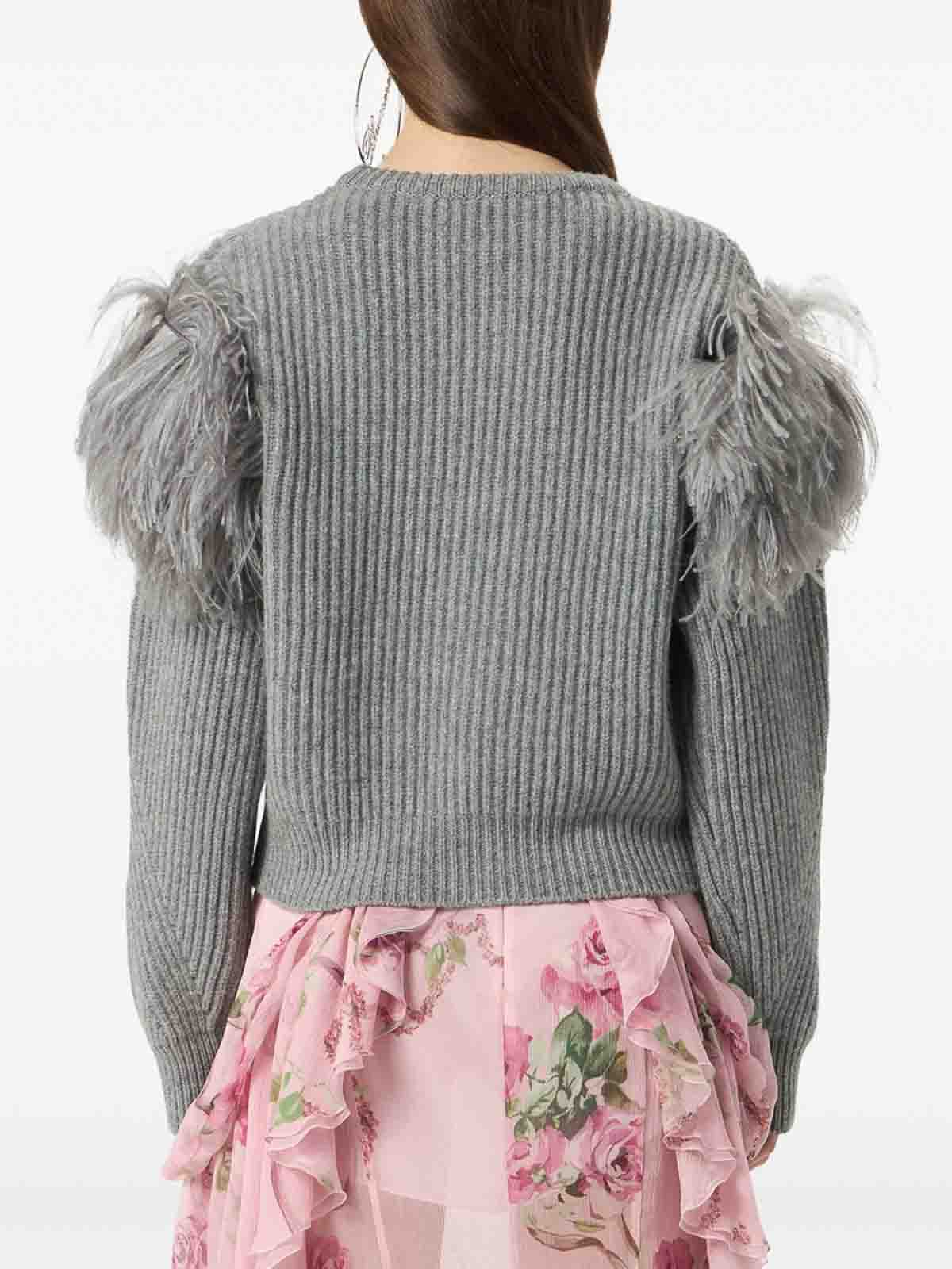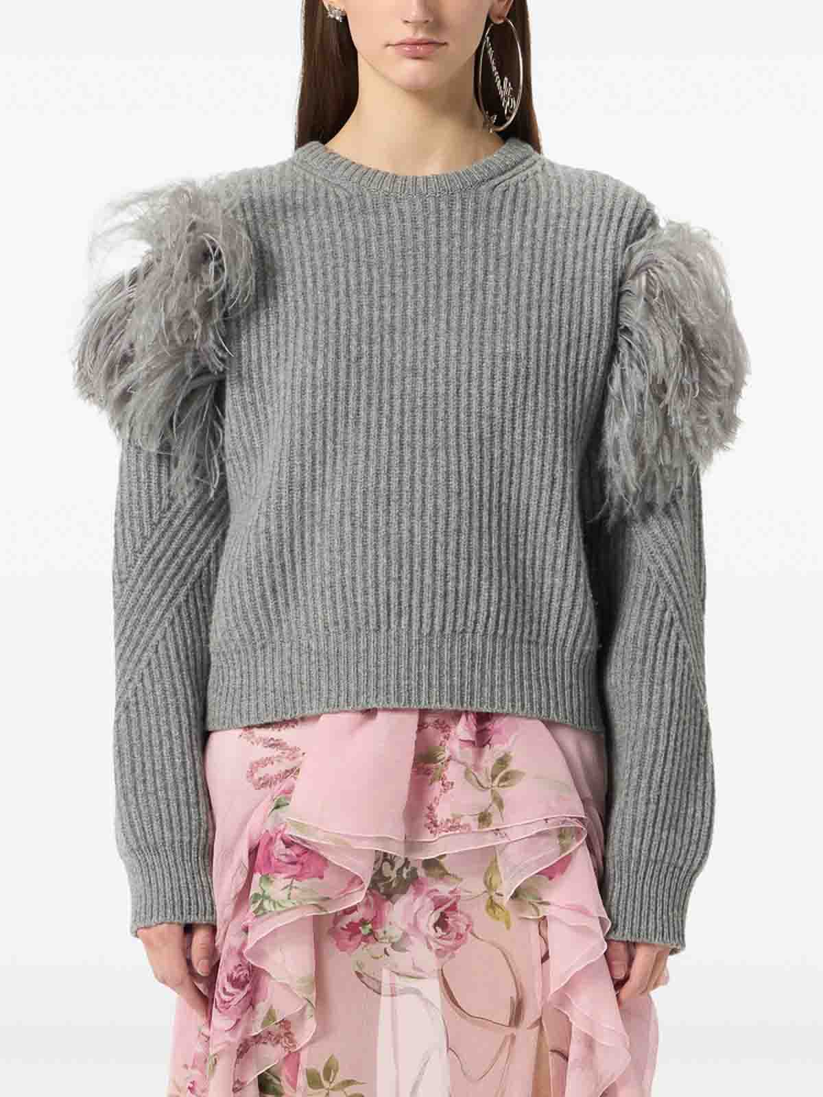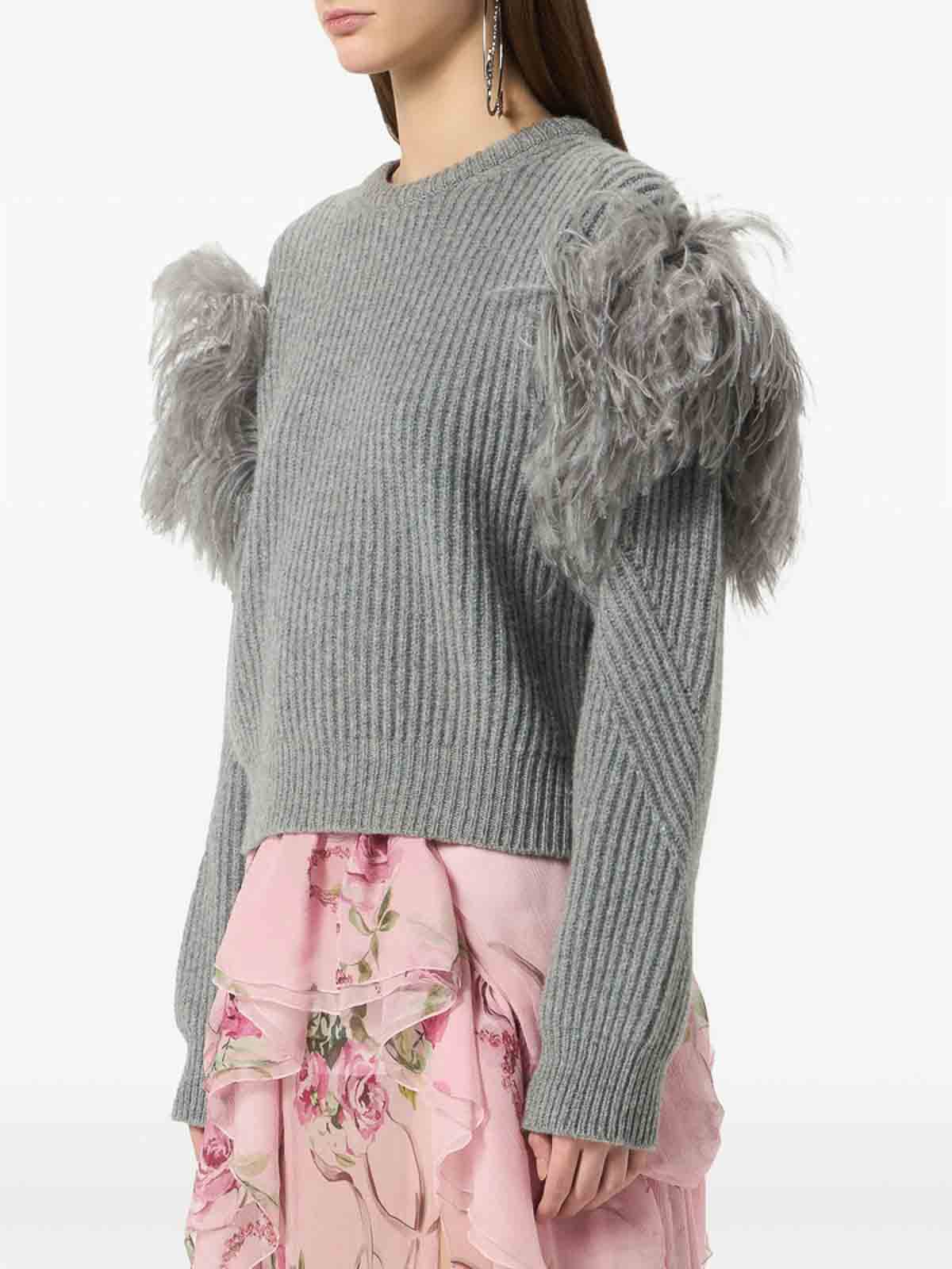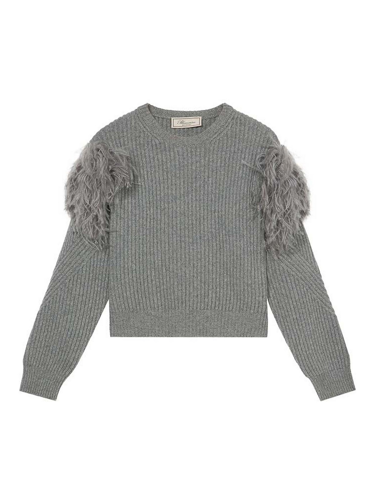 Grey ribbed knit design detailing on sleeves crew neckline long sleeves