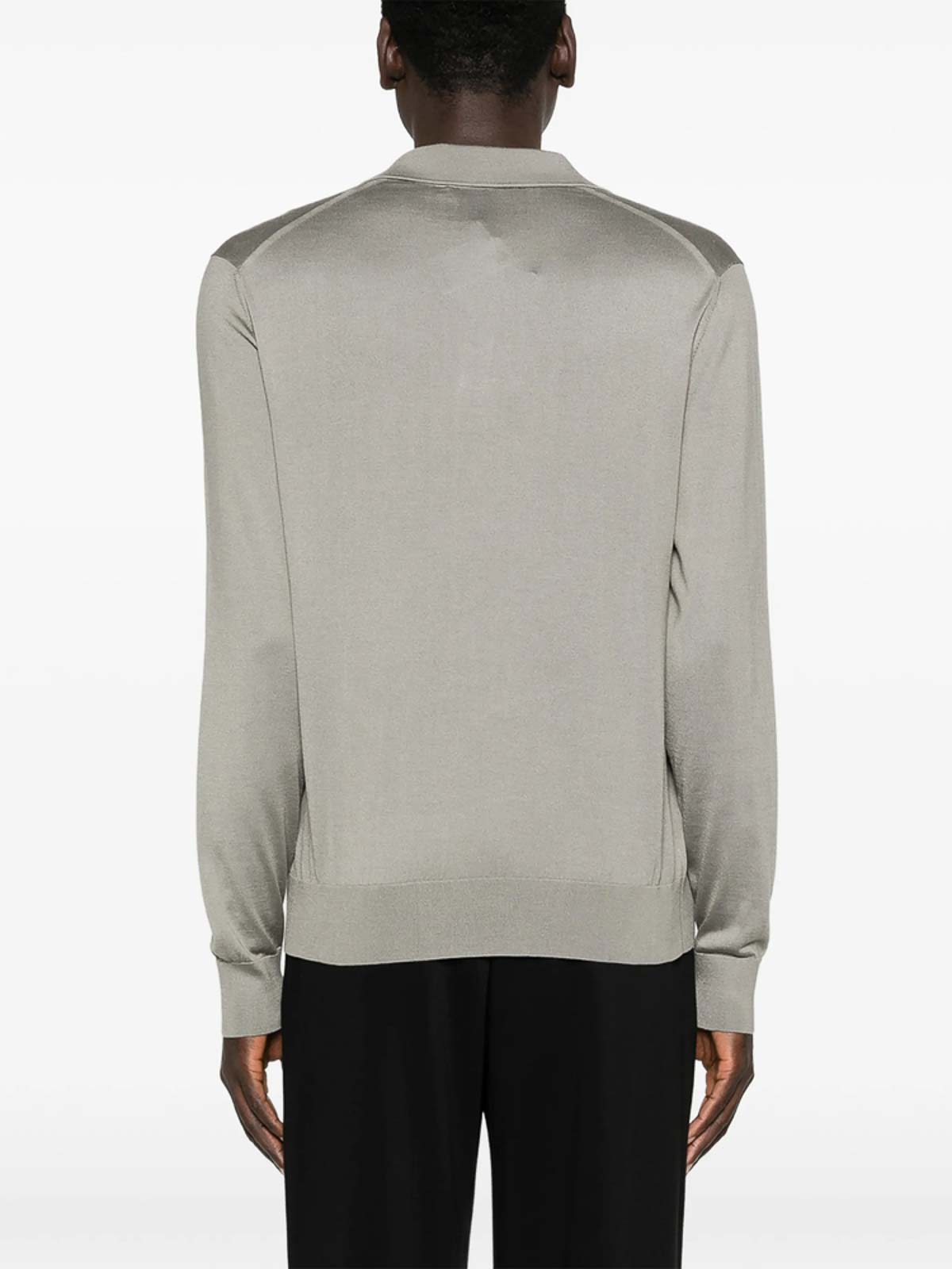 Light grey v-neck long sleeves logo detail ribbed hem ribbed cuffs