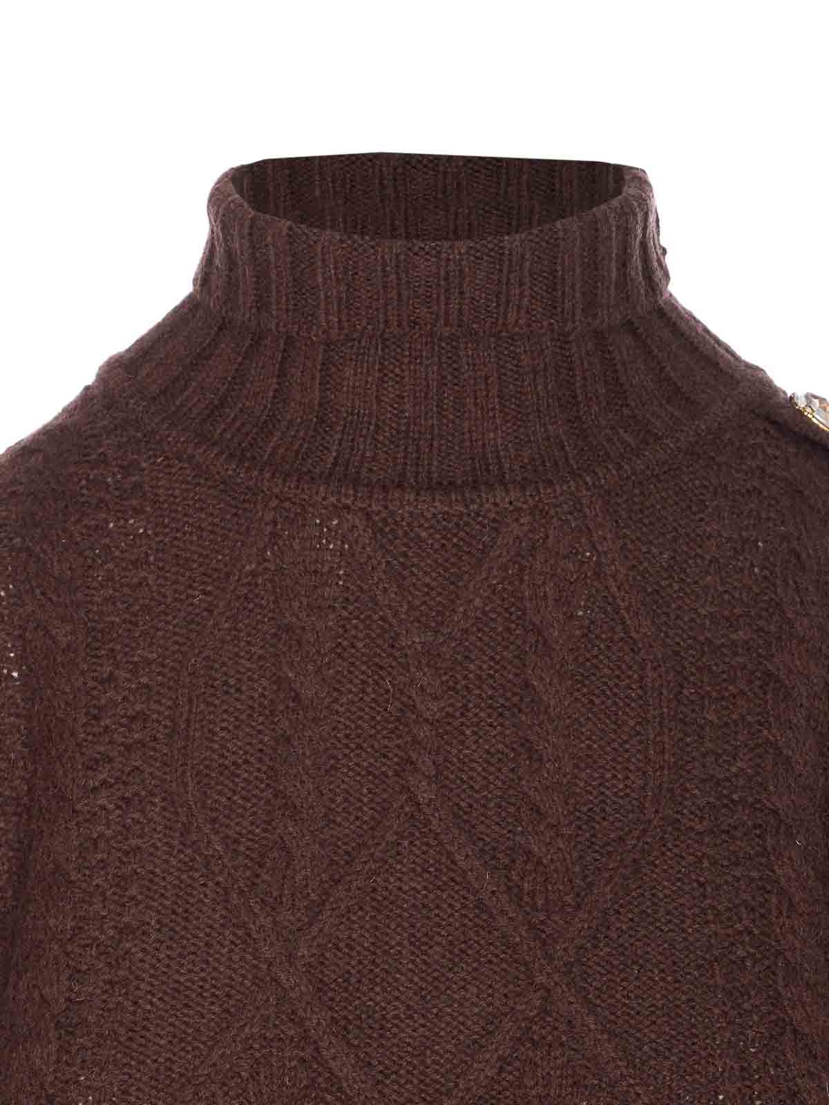 Liu jo brown sweater, crewneck, long sleeves, application crystals details on side, knitted