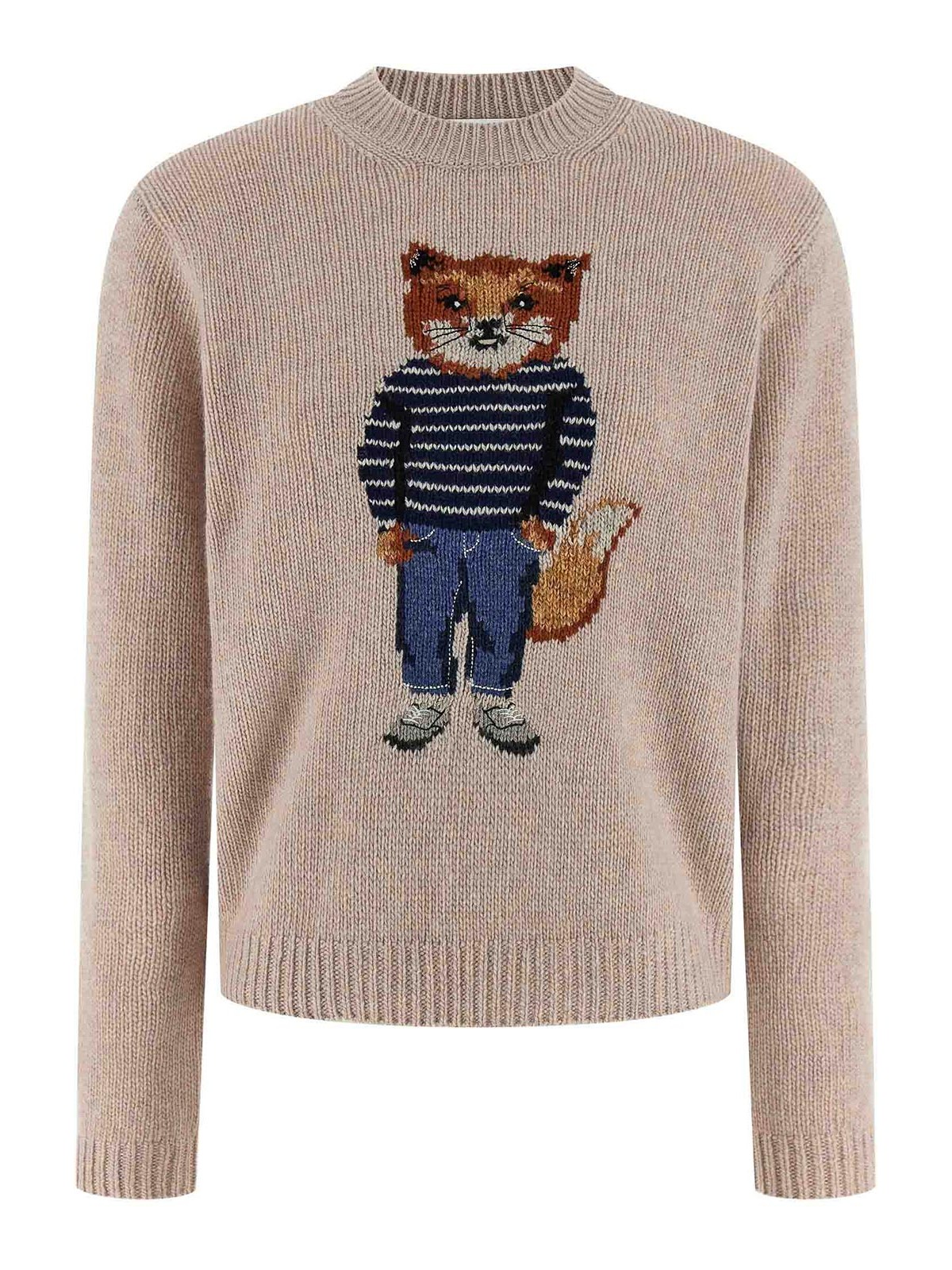 Wool and mohair sweater with front 'dressed fox' intarsia, crew neck, long cuffed sleeves.