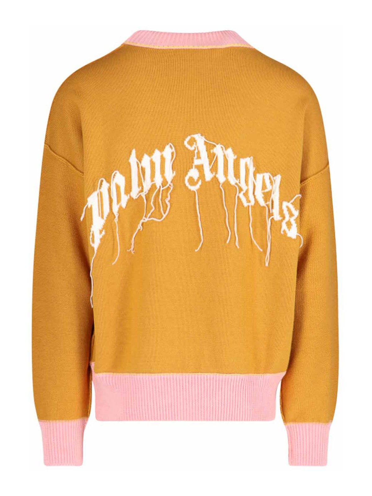 Palm angels bear sweater orange pink crewneck broken bear inlay front logo inlay back ribbed trims straight hem