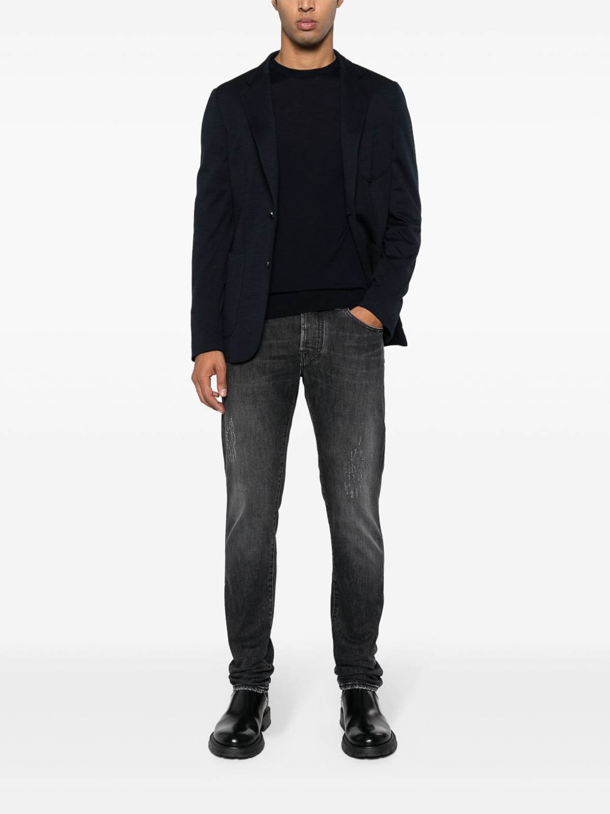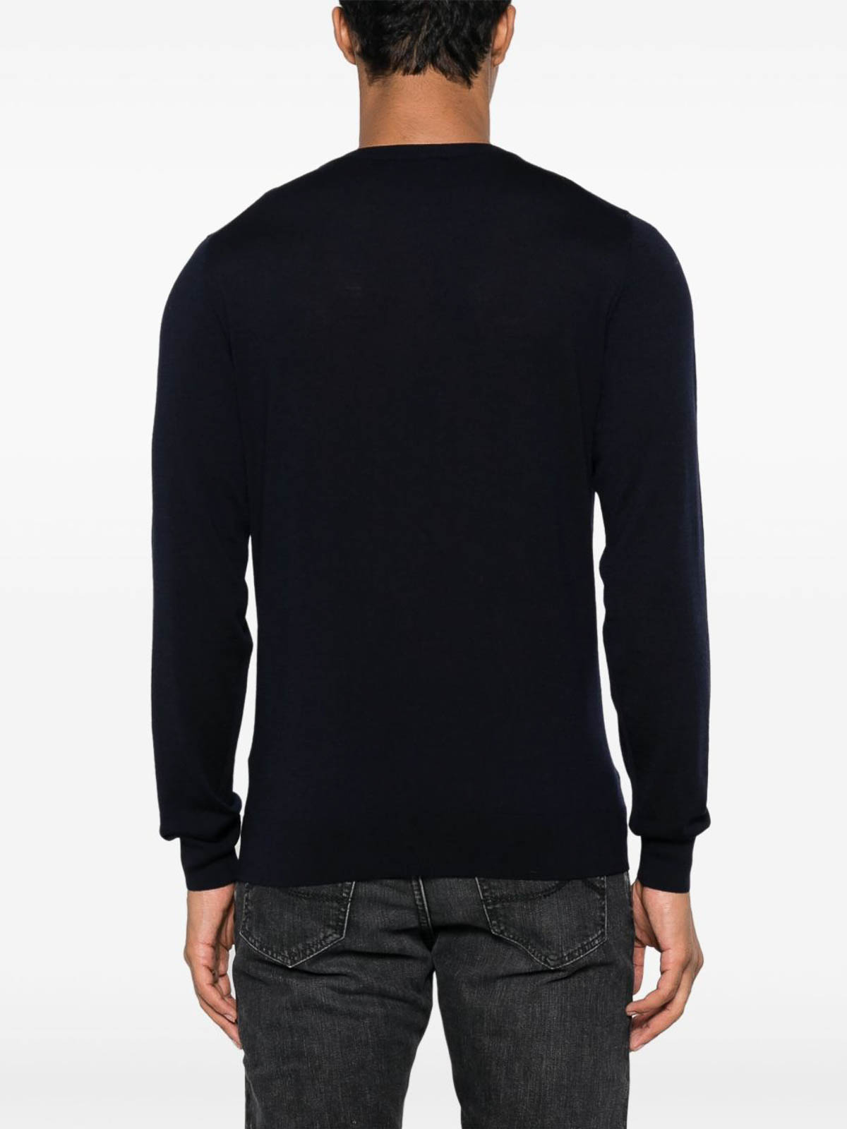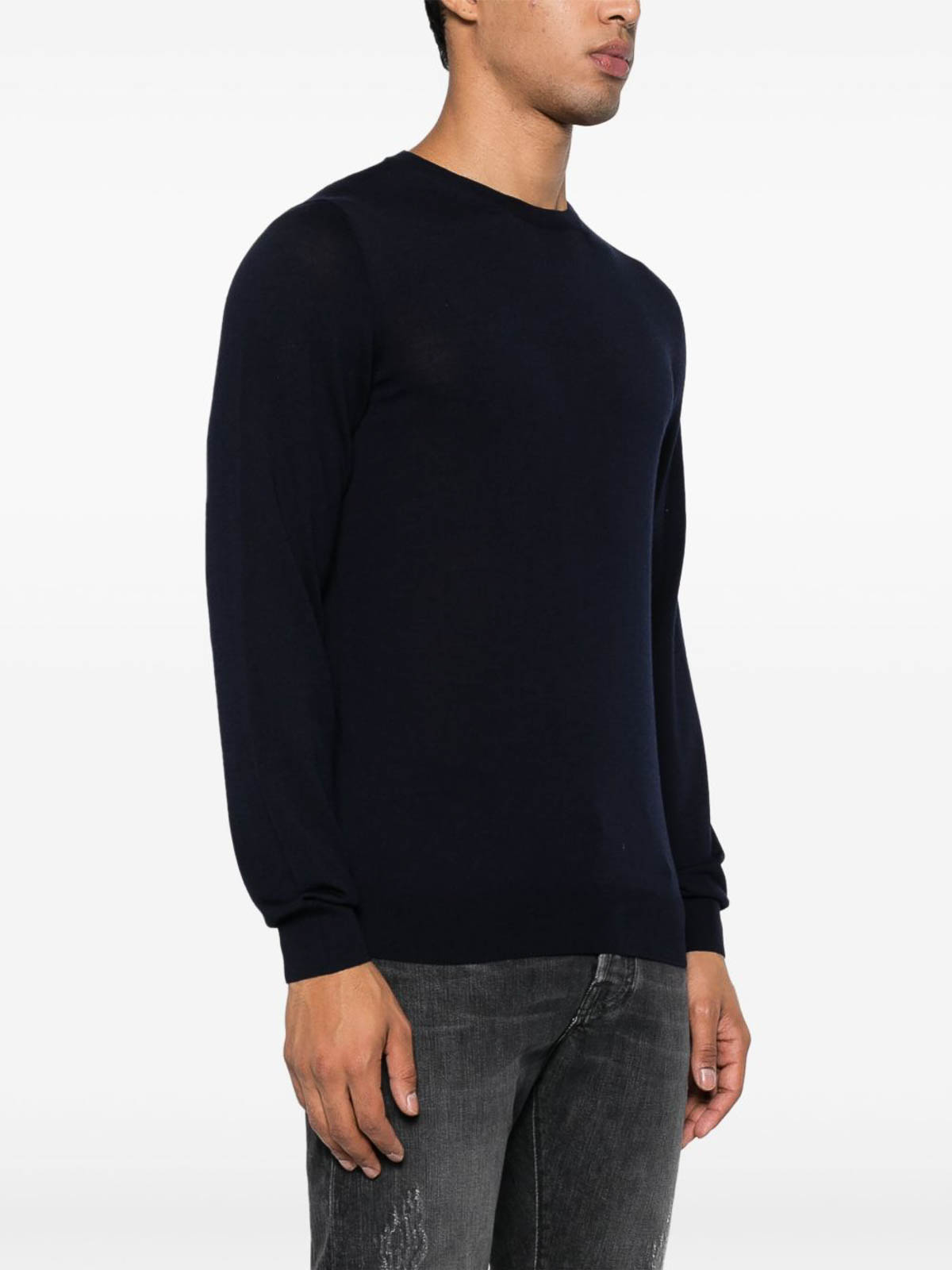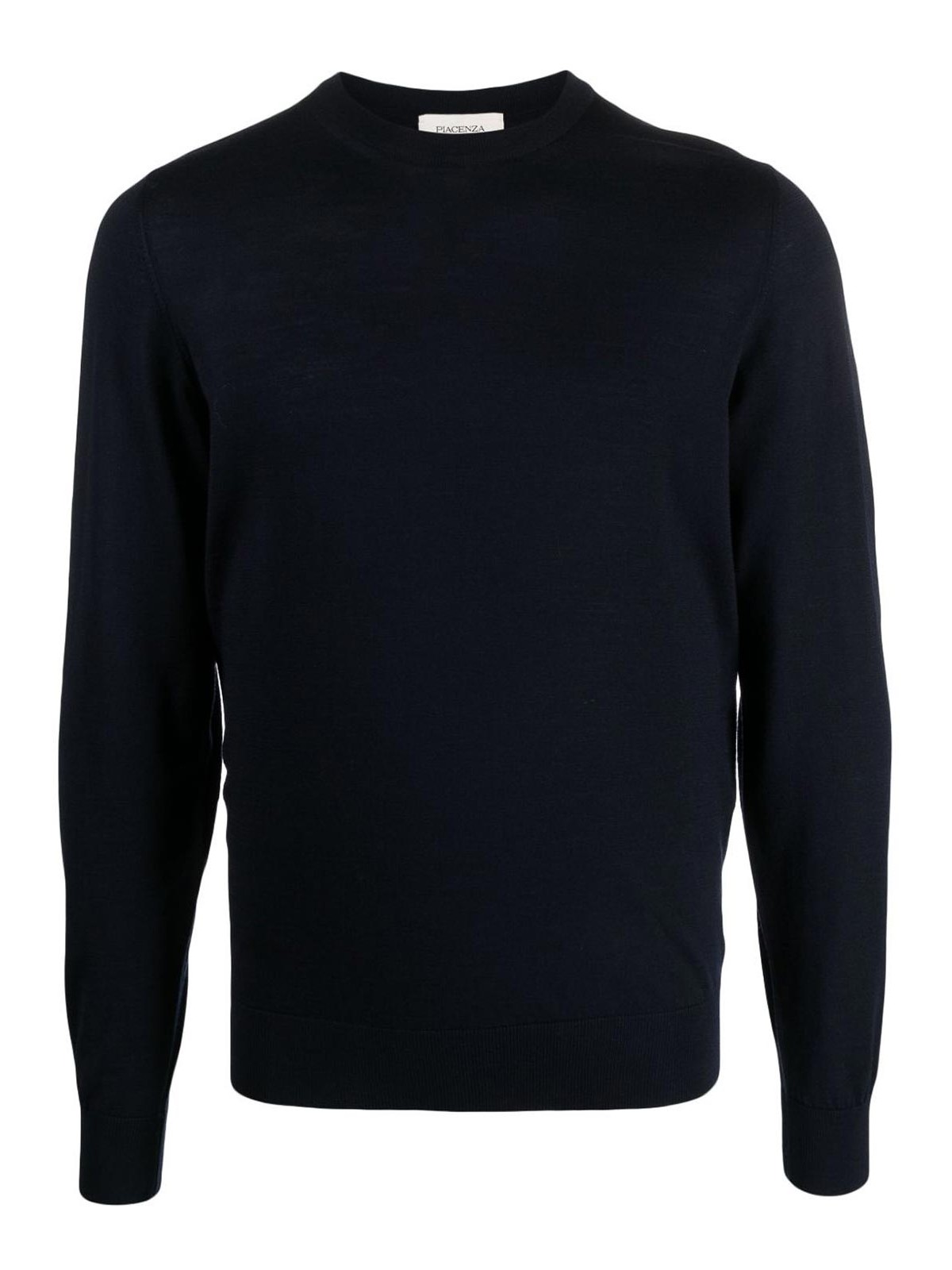 Blue knitted construction crew neck long sleeves ribbed cuffs and hem