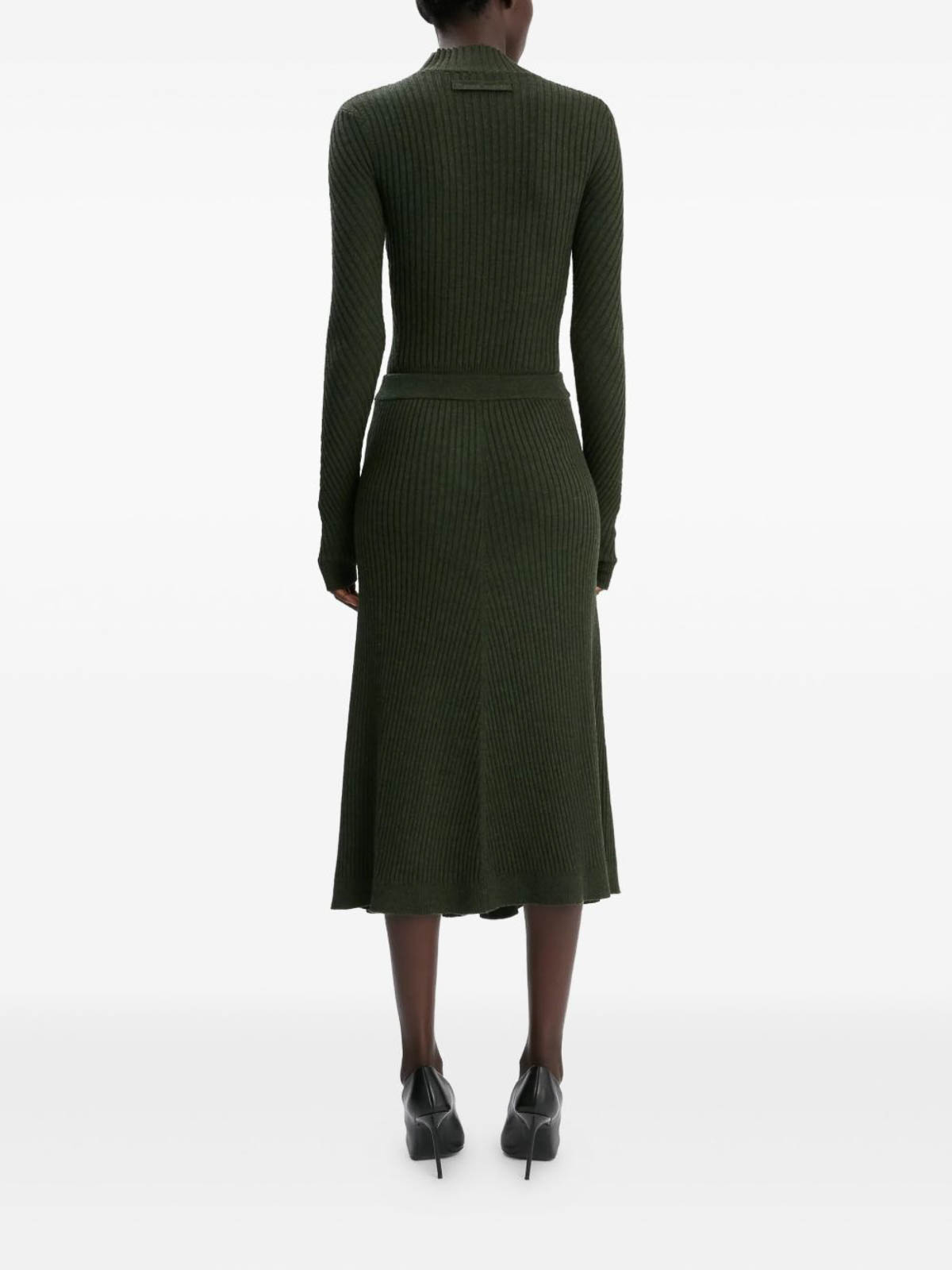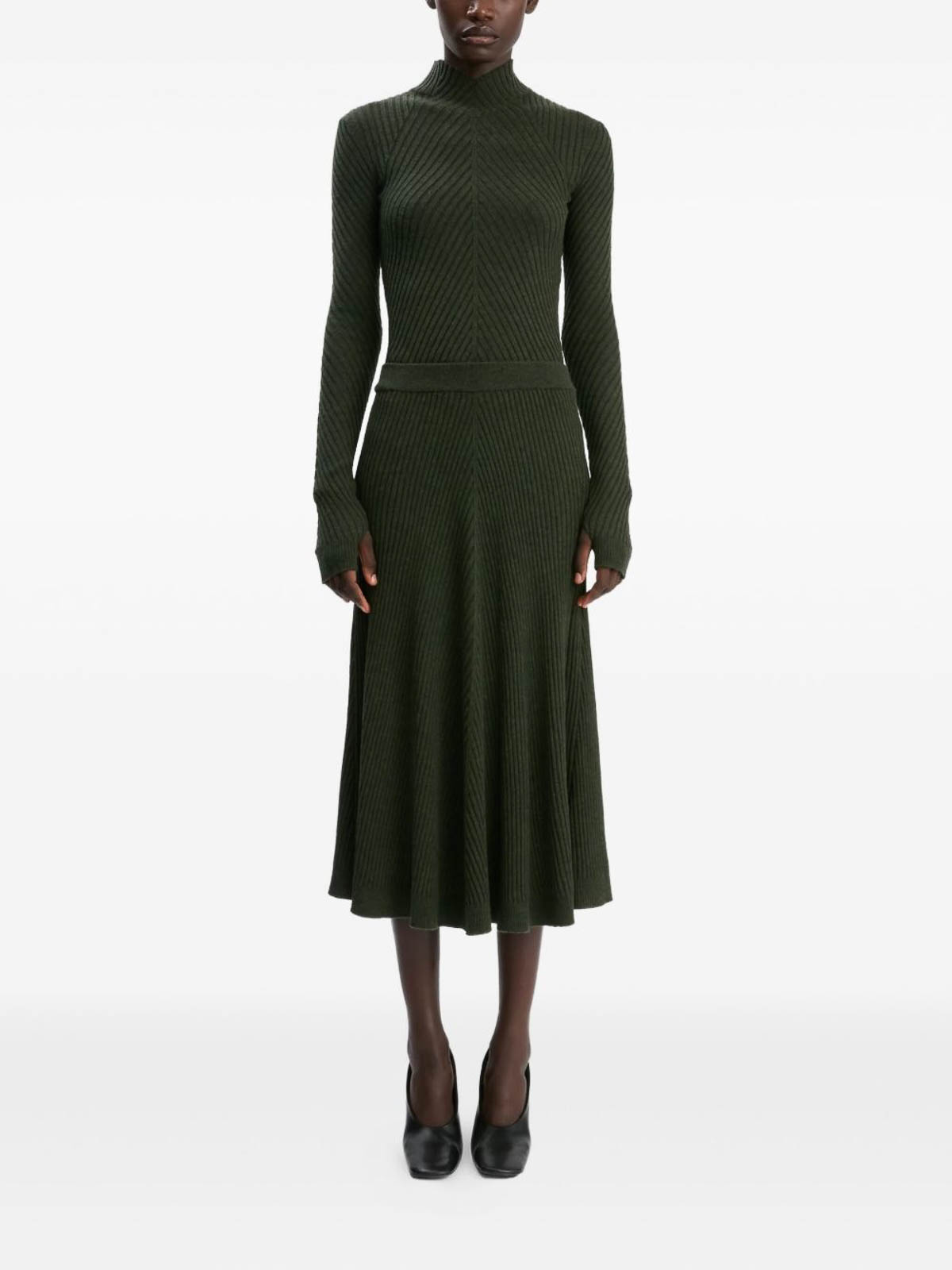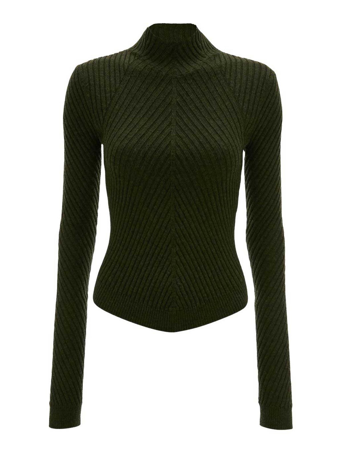 Olive green ribbed knit high neck long sleeves