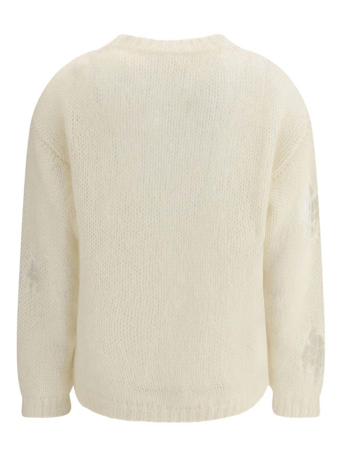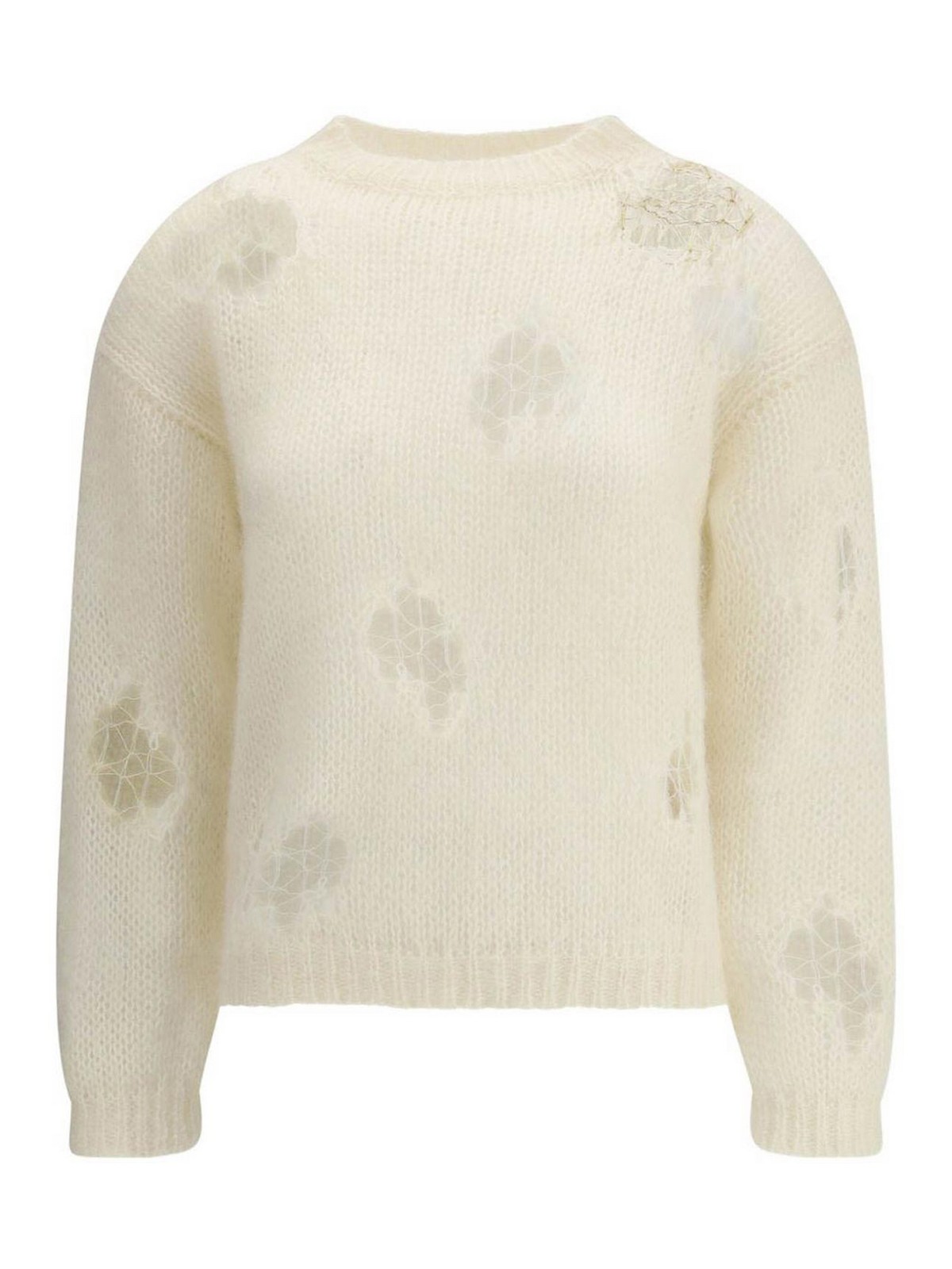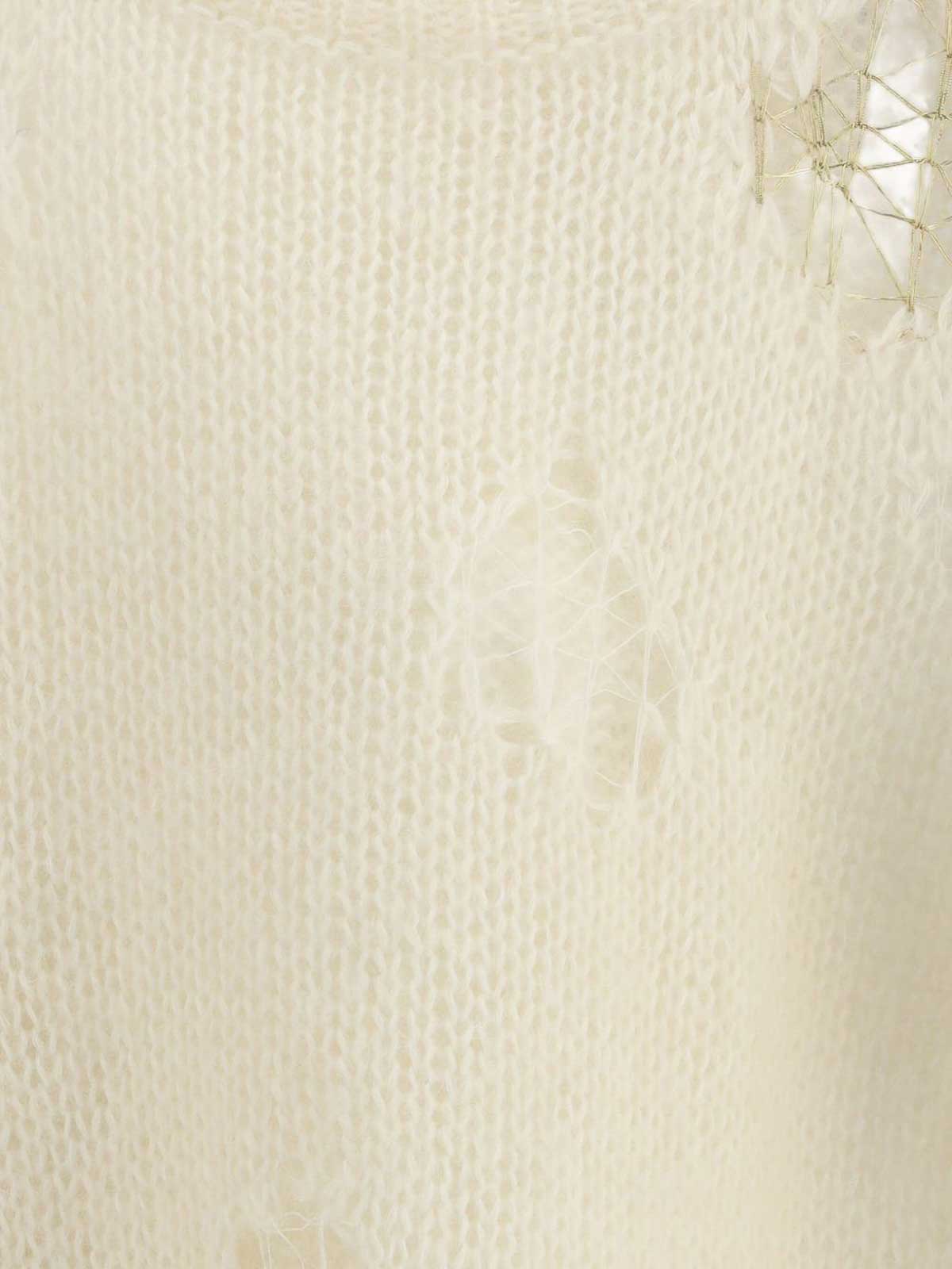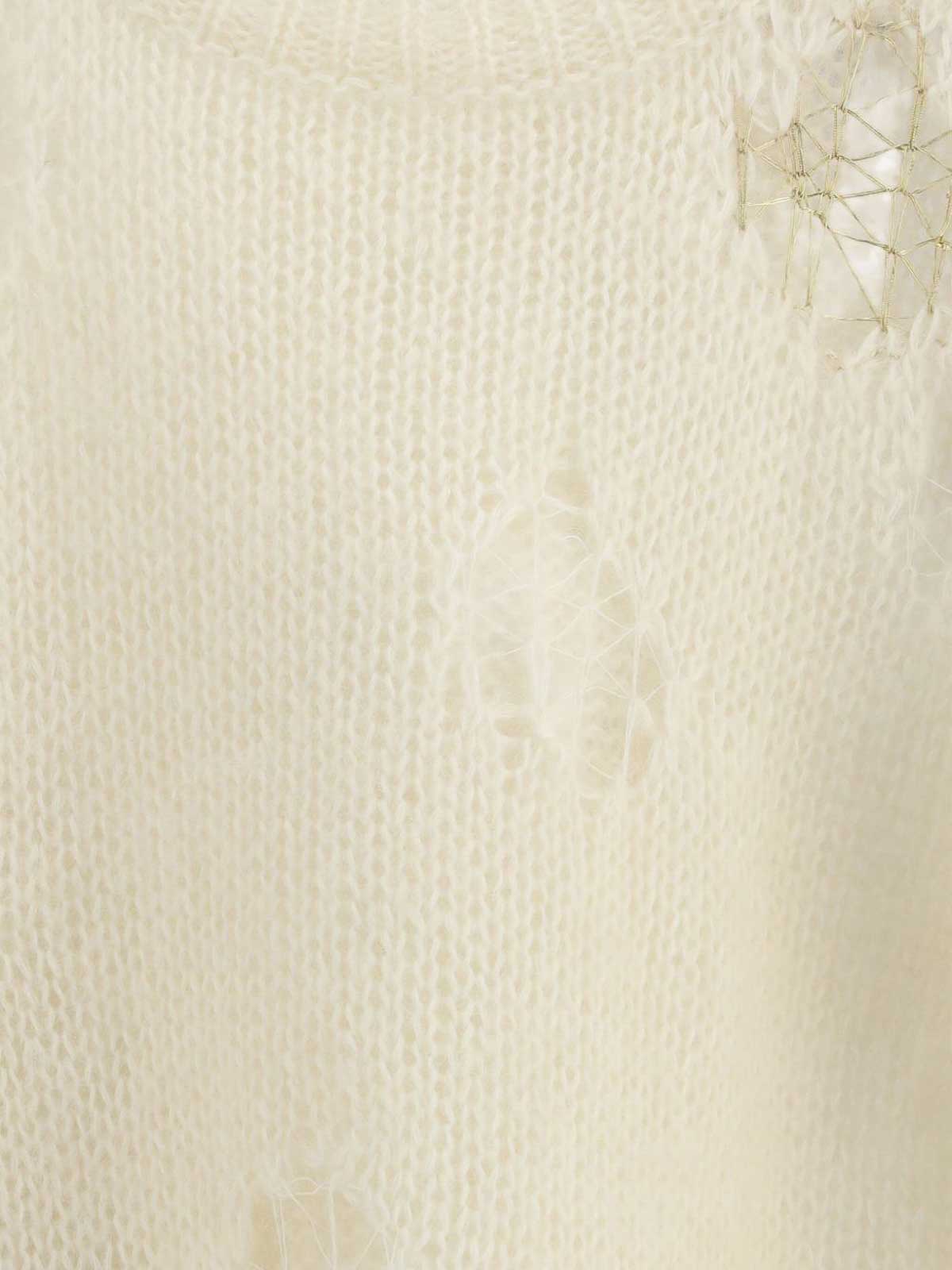 Distressed mohair wool sweater color: matte white long sleeves, crew neck ribbed trim
