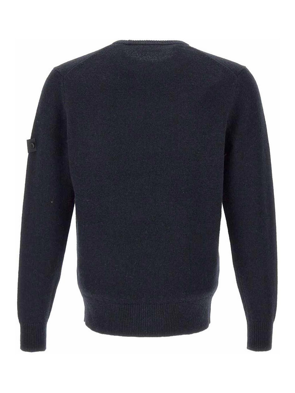 Features blue crew neck long sleeves ribbed hem logo application composition wool 70%, yak 30%