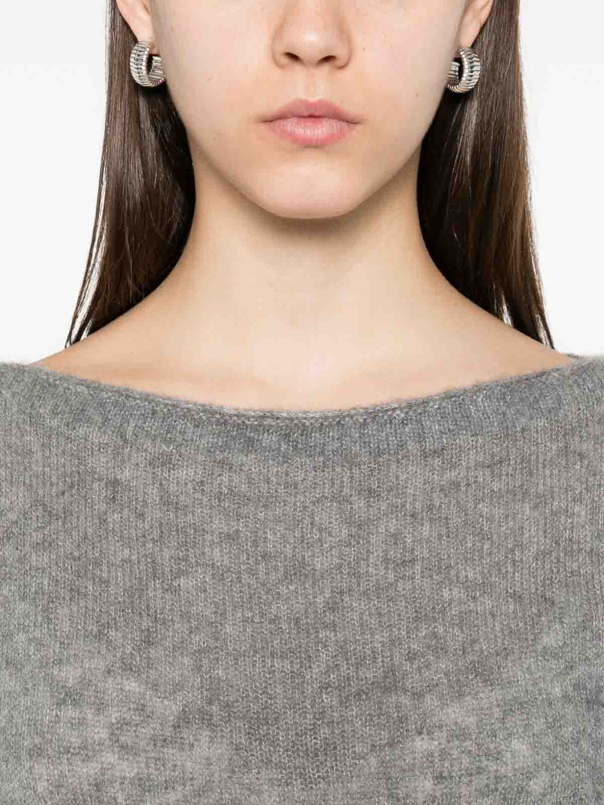 Gray boat neckline long sleeves cuffs with ribbed ribbed edge e