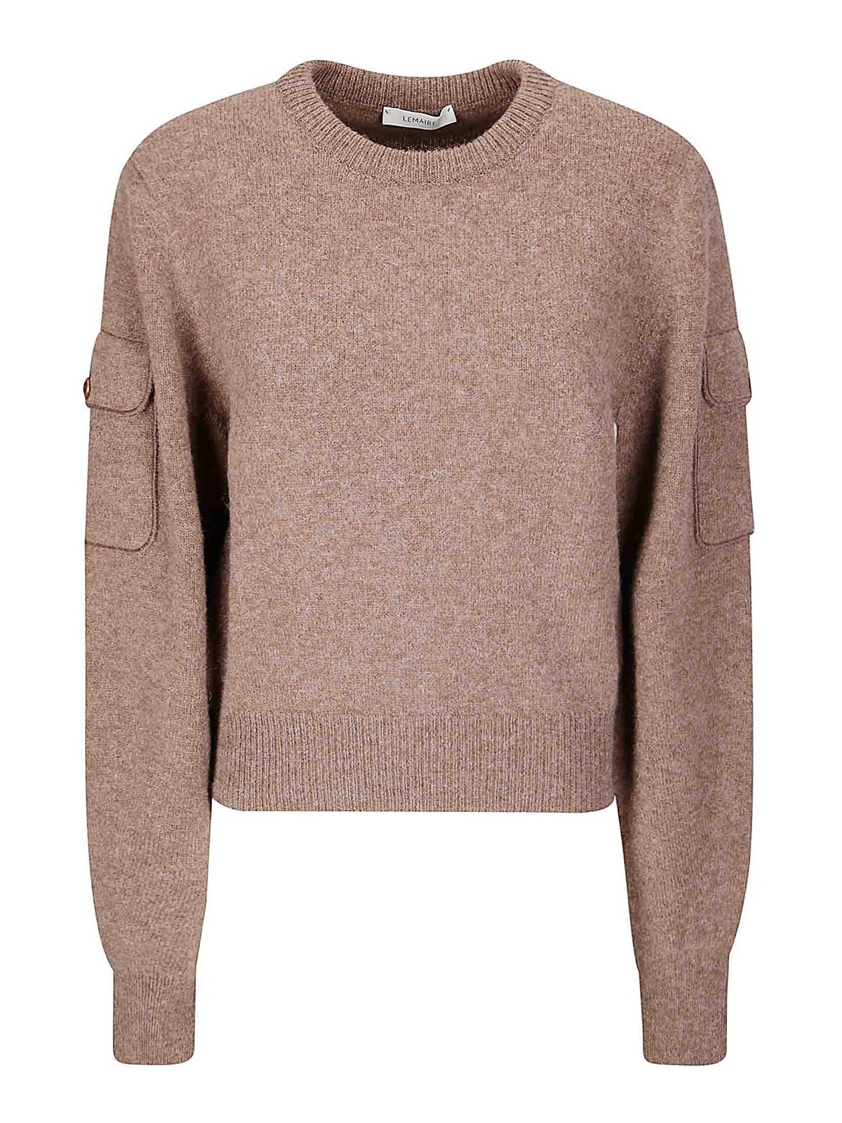 Crew-neck sweater, long sleeves with flap pockets, short fit.
